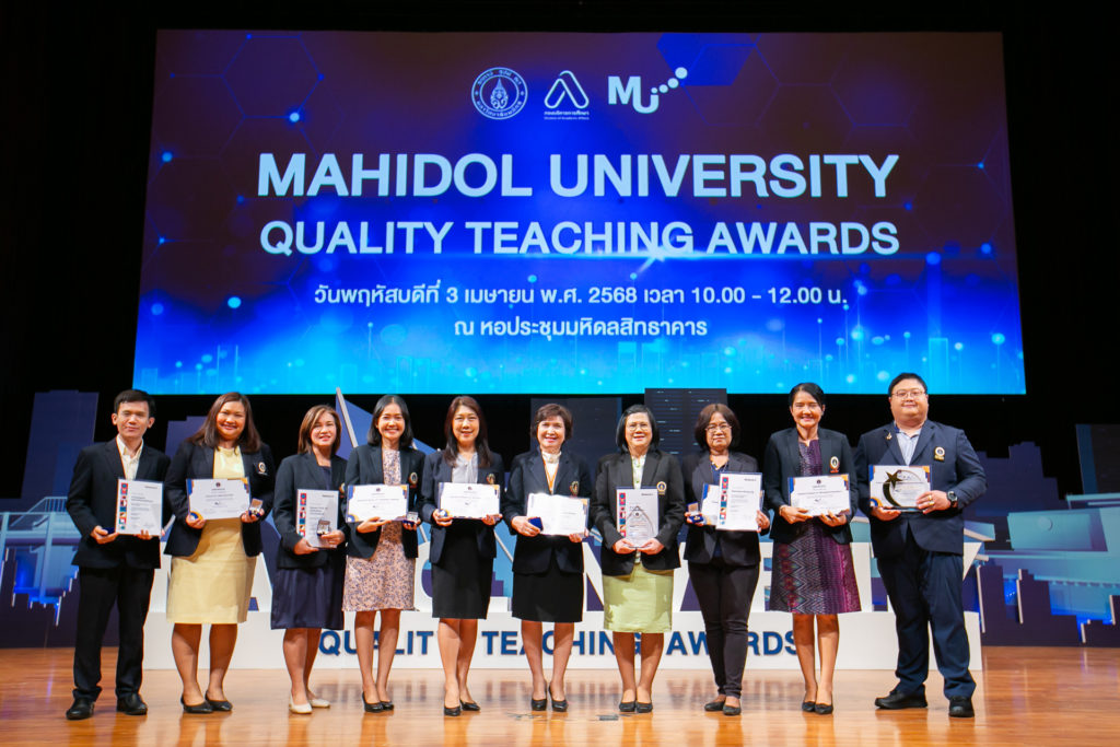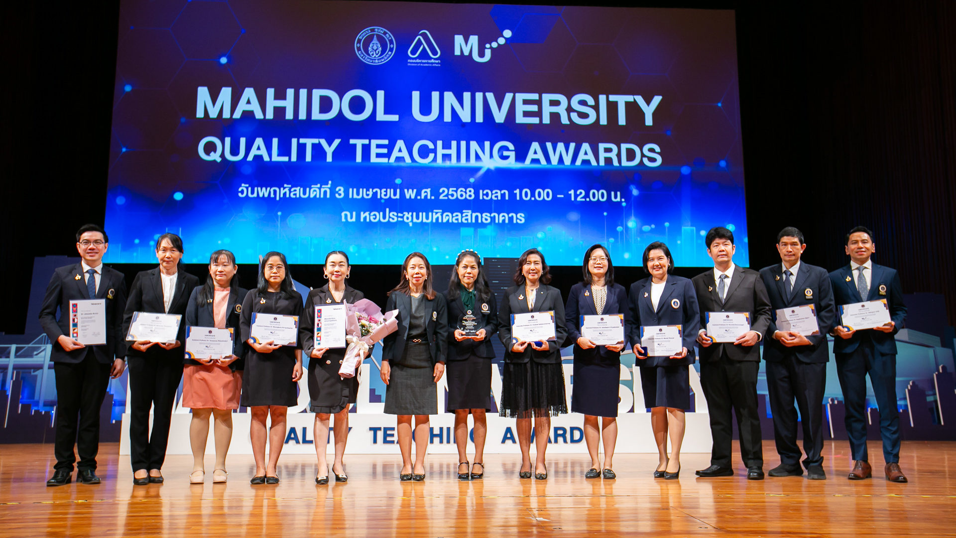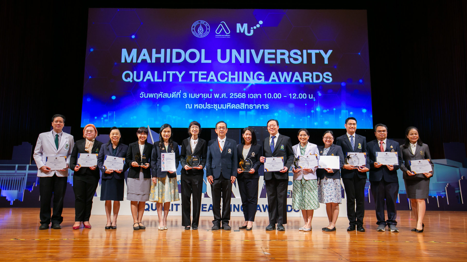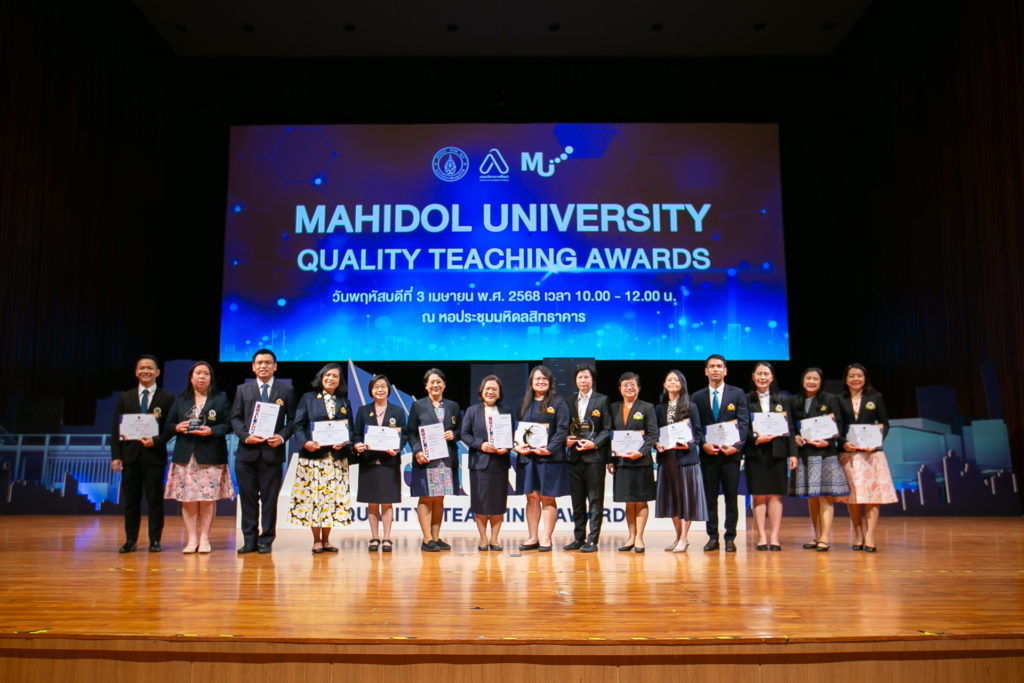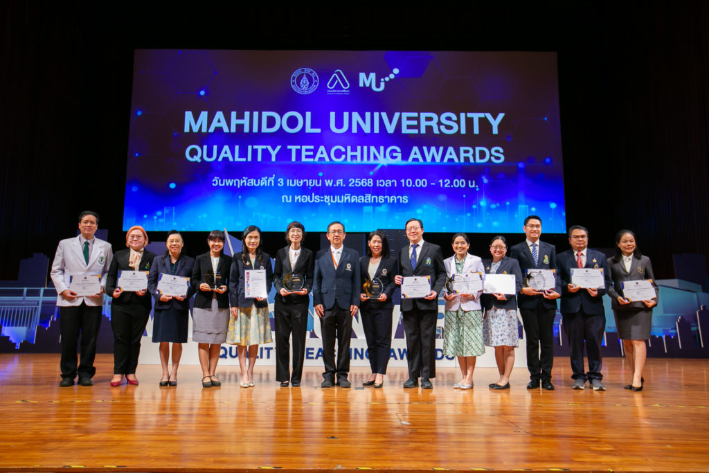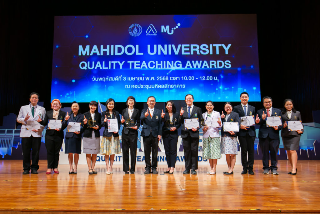 วันที่ 3 เมษายน 2568 ศาสตราจารย์ นายแพทย์ปิยะมิตร ศรีธรา อธิการบดีมหาวิทยาลัยมหิดล เป็นประธานในงาน Mahidol University Quality Teaching Awards พร้อมมอบประกาศนียบัตร และโล่รางวัล ให้แก่คณาจารย์ ของมหาวิทยาลัยมหิดล เพื่อเป็นการยกย่อง เชิดชูคณาจารย์ที่มีความโดดเด่นในด้านการจัดการเรียนการสอน โดยมี รองศาสตราจารย์ ดร. เภสัชกรเนติ สุขสมบูรณ์ รองอธิการบดีฝ่ายการศึกษา มหาวิทยาลัยมหิดล กล่าวรายงานผลการดำเนินงานที่ผ่านมา และ อาจารย์ ดร.ระพี บุญเปลื้อง รองคณบดีฝ่ายสื่อสารองค์กรและวิเทศสัมพันธ์ คณะวิทยาศาสตร์ มหาวิทยาลัยมหิดล เป็นผู้ดำเนินรายการ พร้อมด้วย ผู้บริหารมหาวิทยาลัยมหิดล ผู้บริหารส่วนงาน เข้าร่วมพิธี ณ หอประชุมมหิดลสิทธาคาร มหาวิทยาลัยมหิดล ศาลายา