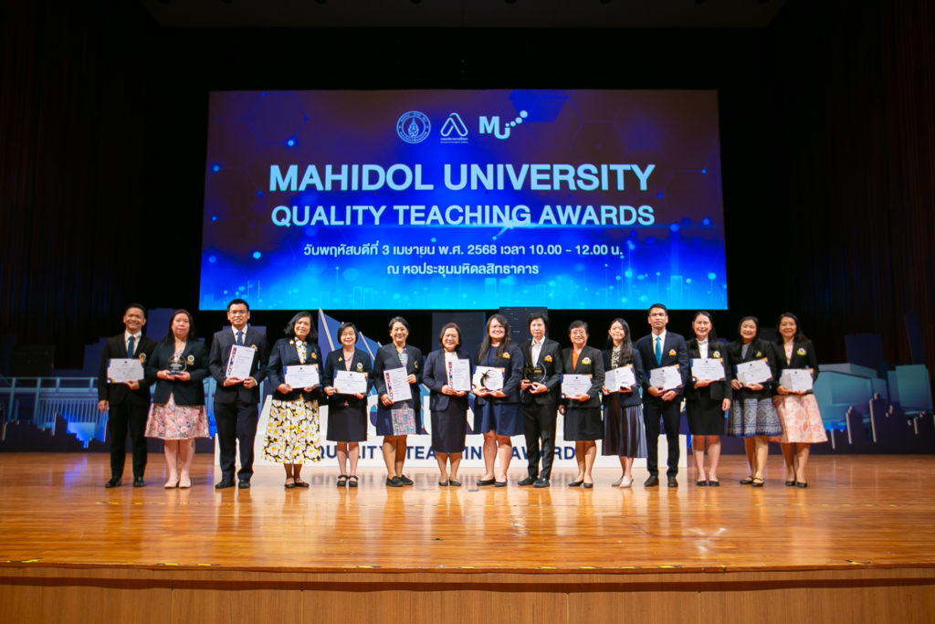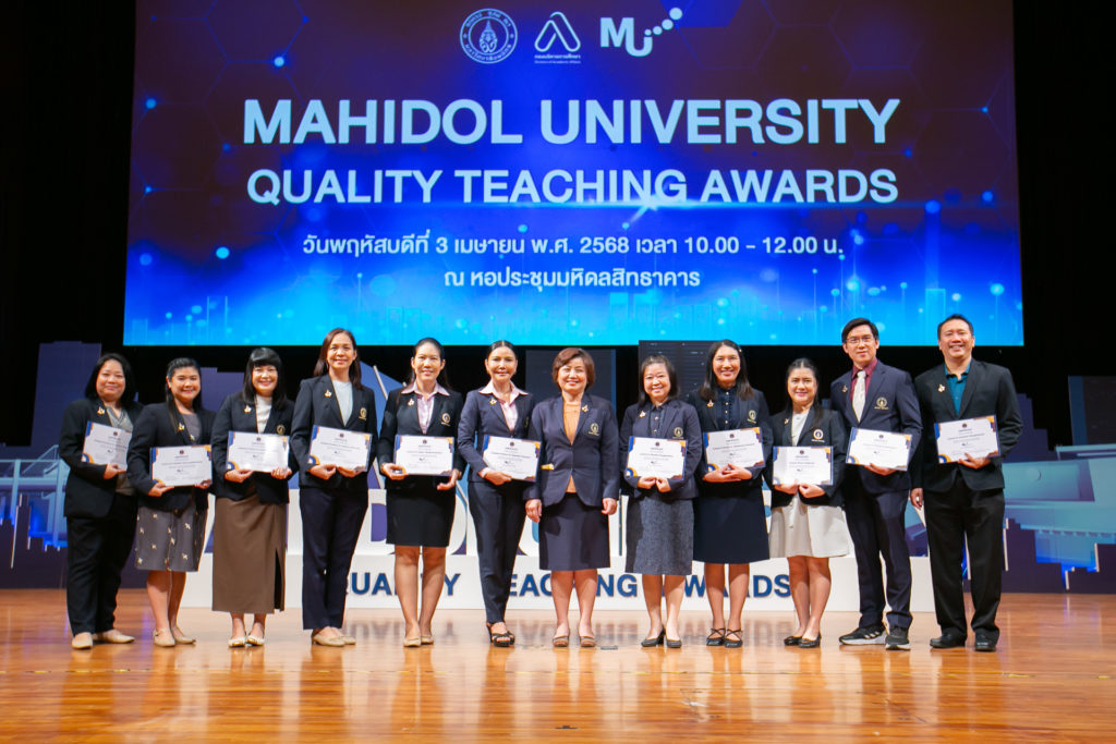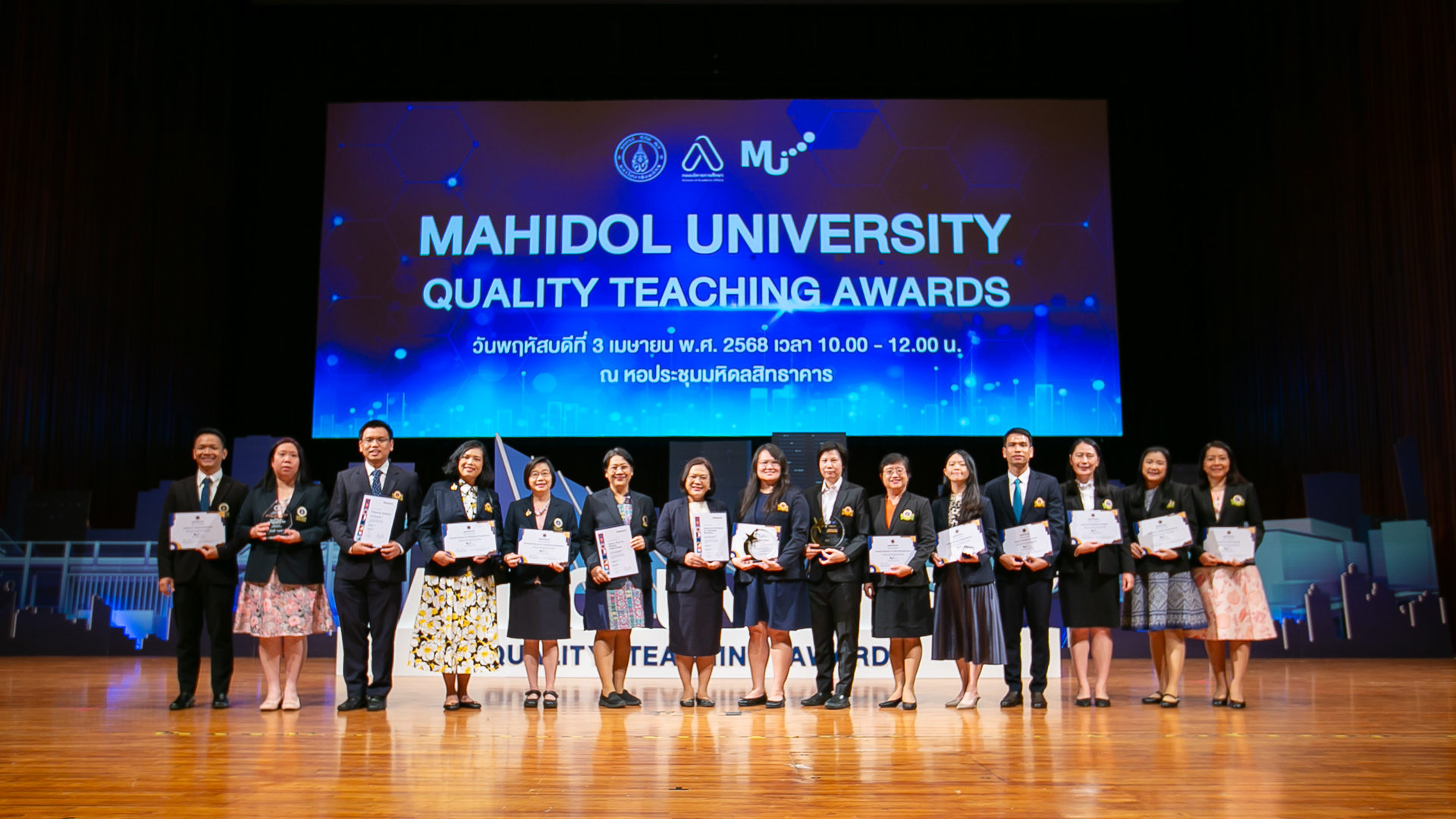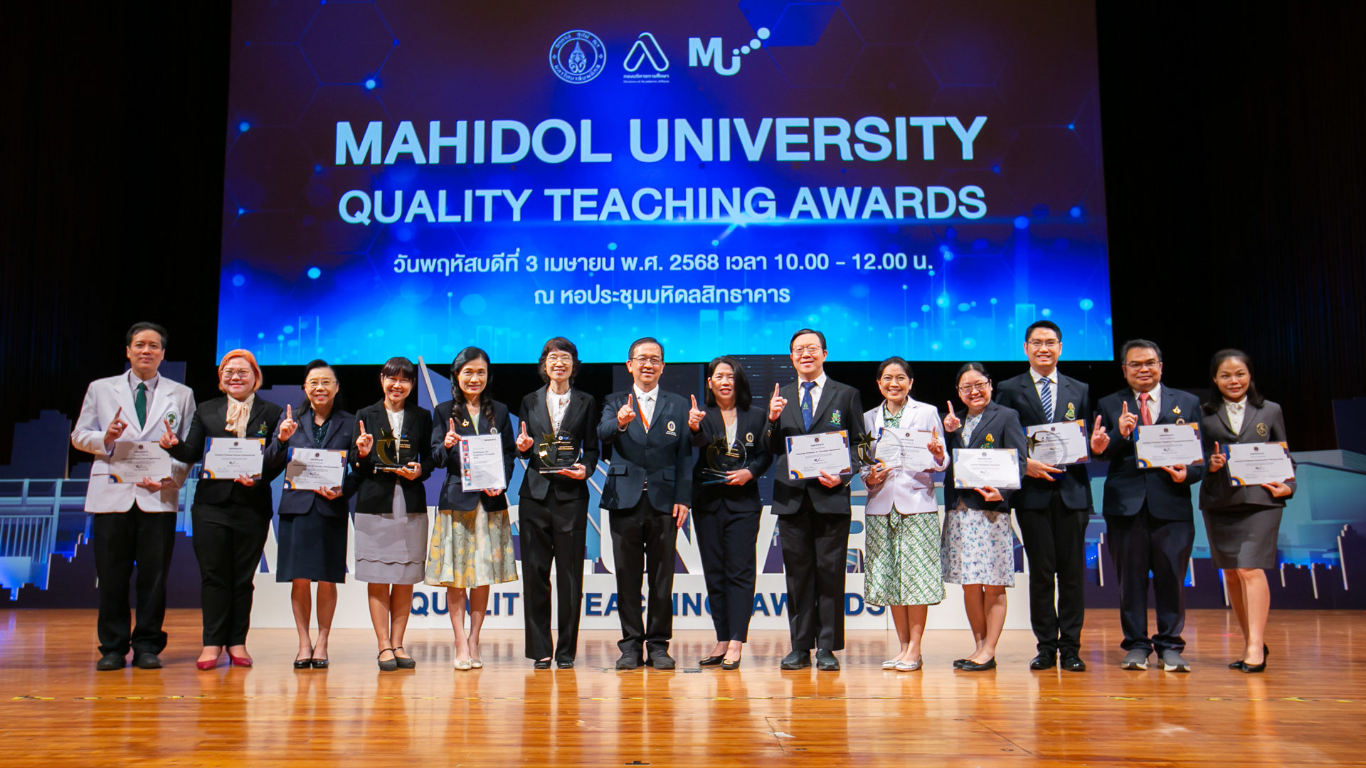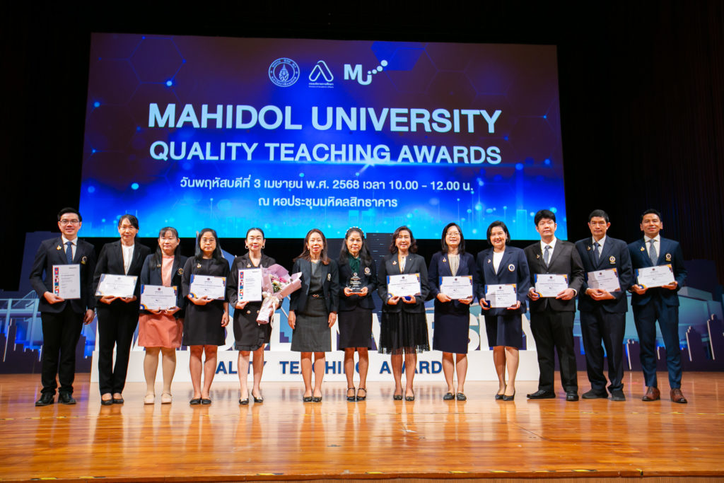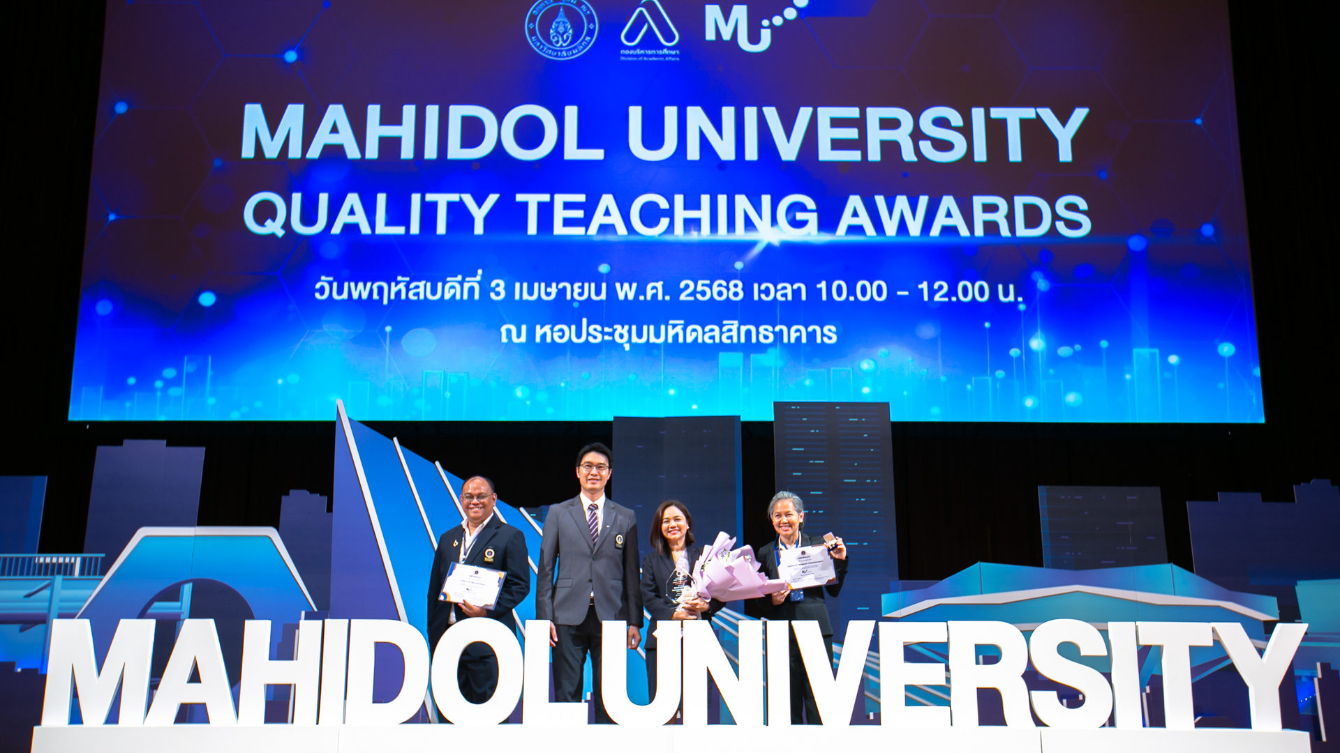 วันที่ 3 เมษายน 2568 ศาสตราจารย์ นายแพทย์ปิยะมิตร ศรีธรา อธิการบดีมหาวิทยาลัยมหิดล เป็นประธานในงาน Mahidol University Quality Teaching Awards พร้อมมอบประกาศนียบัตร และโล่รางวัล ให้แก่คณาจารย์ ของมหาวิทยาลัยมหิดล เพื่อเป็นการยกย่อง เชิดชูคณาจารย์ที่มีความโดดเด่นในด้านการจัดการเรียนการสอน โดยมี รองศาสตราจารย์ ดร. เภสัชกรเนติ สุขสมบูรณ์ รองอธิการบดีฝ่ายการศึกษา มหาวิทยาลัยมหิดล กล่าวรายงานผลการดำเนินงานที่ผ่านมา และ อาจารย์ ดร.ระพี บุญเปลื้อง รองคณบดีฝ่ายสื่อสารองค์กรและวิเทศสัมพันธ์ คณะวิทยาศาสตร์ มหาวิทยาลัยมหิดล เป็นผู้ดำเนินรายการ พร้อมด้วย ผู้บริหารมหาวิทยาลัยมหิดล ผู้บริหารส่วนงาน เข้าร่วมพิธี ณ หอประชุมมหิดลสิทธาคาร มหาวิทยาลัยมหิดล ศาลายา