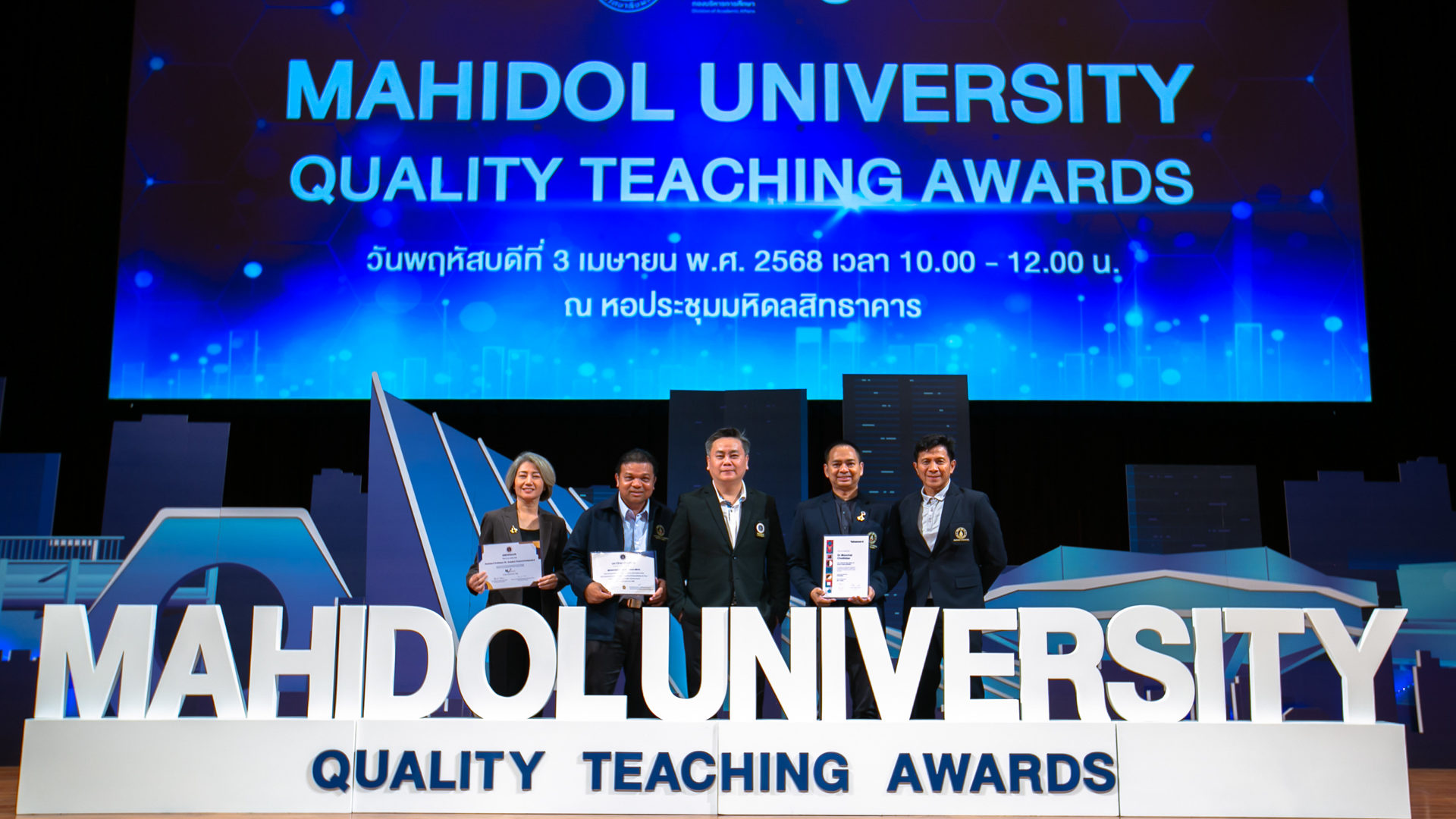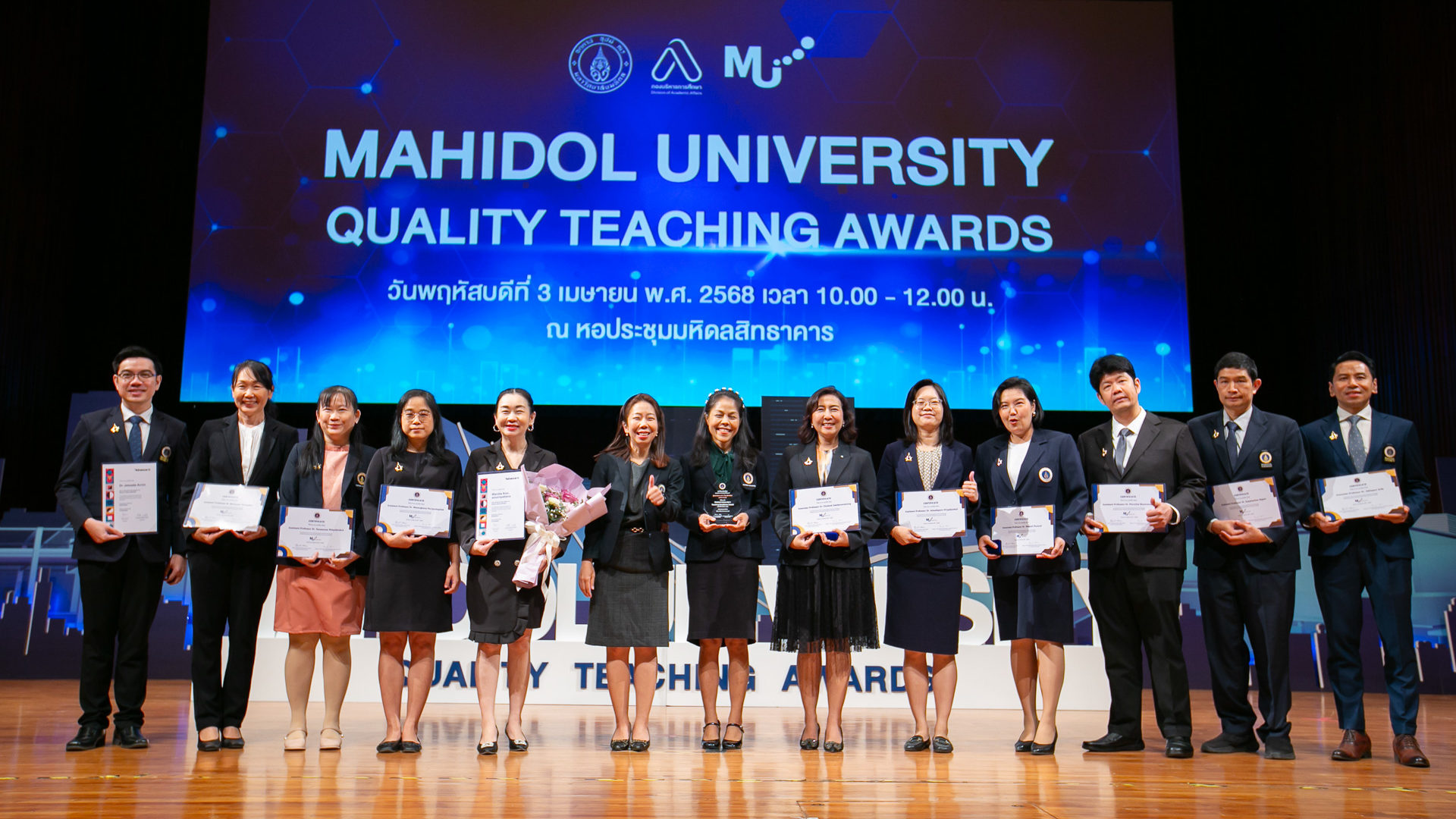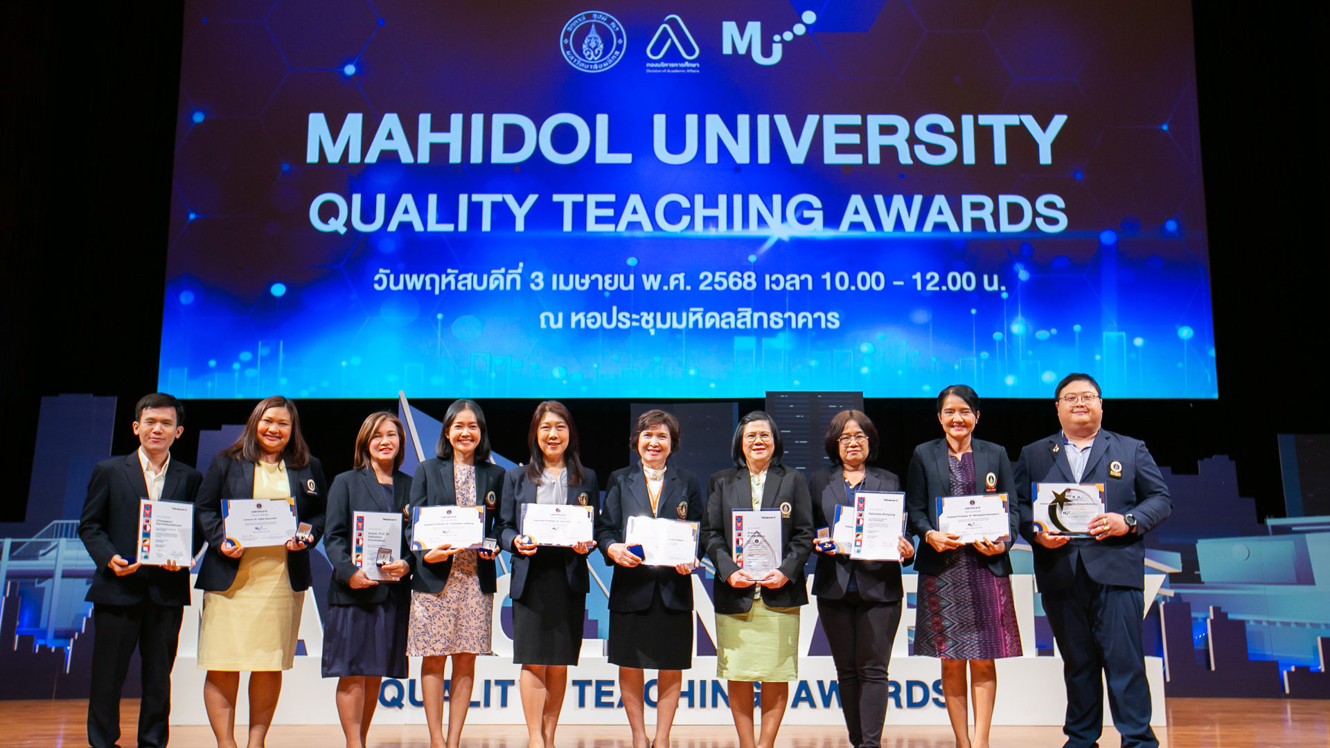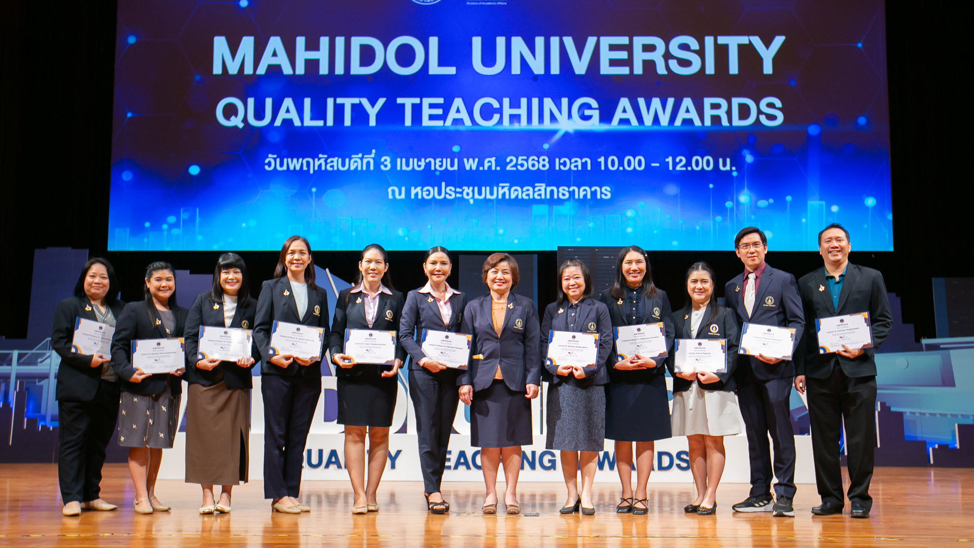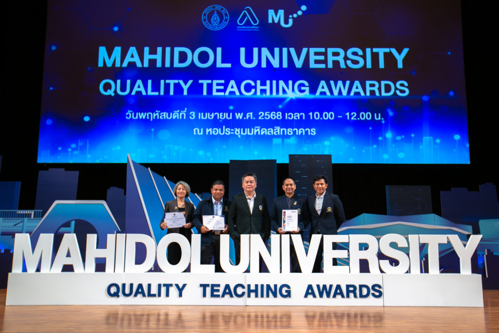 วันที่ 3 เมษายน 2568 ศาสตราจารย์ นายแพทย์ปิยะมิตร ศรีธรา อธิการบดีมหาวิทยาลัยมหิดล เป็นประธานในงาน Mahidol University Quality Teaching Awards พร้อมมอบประกาศนียบัตร และโล่รางวัล ให้แก่คณาจารย์ ของมหาวิทยาลัยมหิดล เพื่อเป็นการยกย่อง เชิดชูคณาจารย์ที่มีความโดดเด่นในด้านการจัดการเรียนการสอน โดยมี รองศาสตราจารย์ ดร. เภสัชกรเนติ สุขสมบูรณ์ รองอธิการบดีฝ่ายการศึกษา มหาวิทยาลัยมหิดล กล่าวรายงานผลการดำเนินงานที่ผ่านมา และ อาจารย์ ดร.ระพี บุญเปลื้อง รองคณบดีฝ่ายสื่อสารองค์กรและวิเทศสัมพันธ์ คณะวิทยาศาสตร์ มหาวิทยาลัยมหิดล เป็นผู้ดำเนินรายการ พร้อมด้วย ผู้บริหารมหาวิทยาลัยมหิดล ผู้บริหารส่วนงาน เข้าร่วมพิธี ณ หอประชุมมหิดลสิทธาคาร มหาวิทยาลัยมหิดล ศาลายา