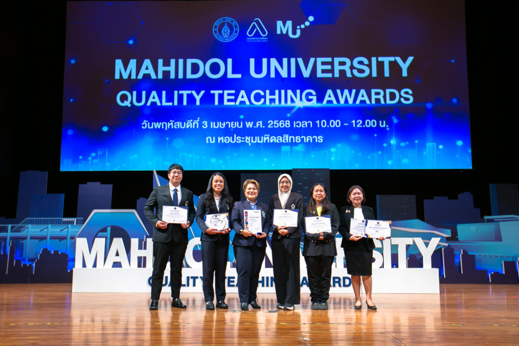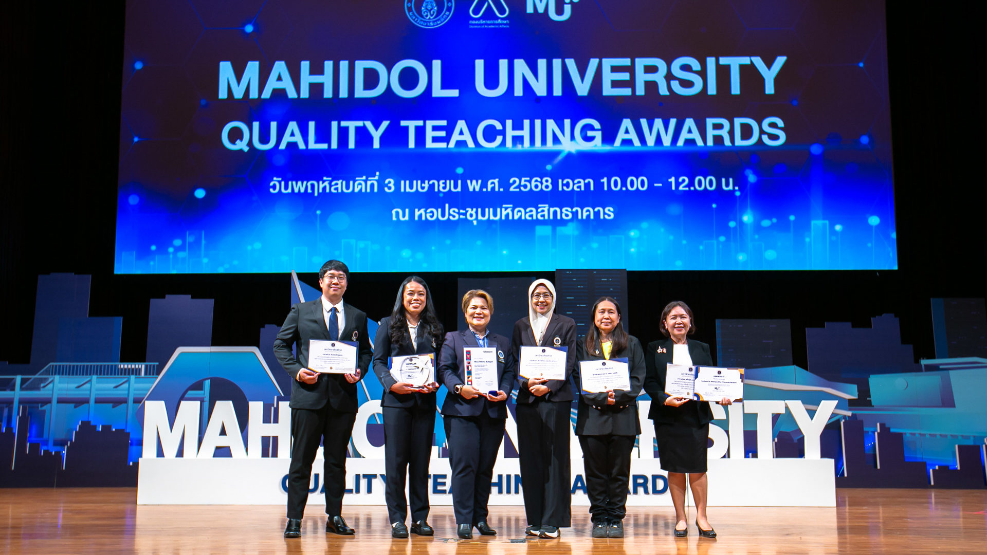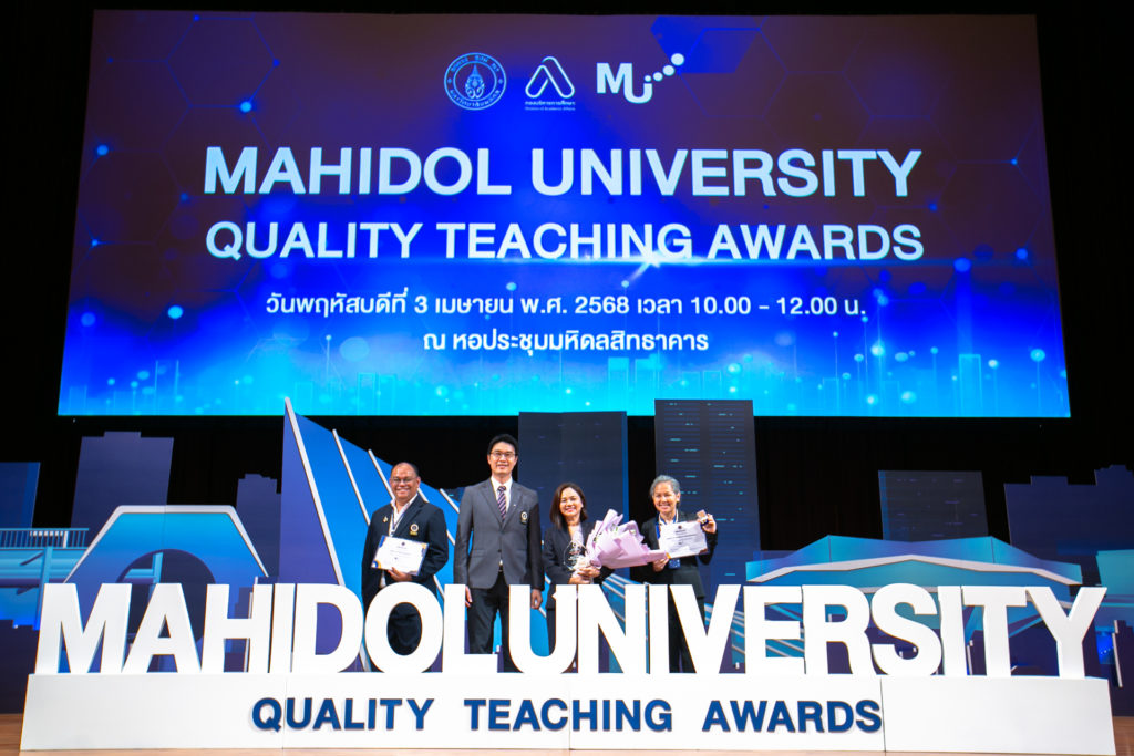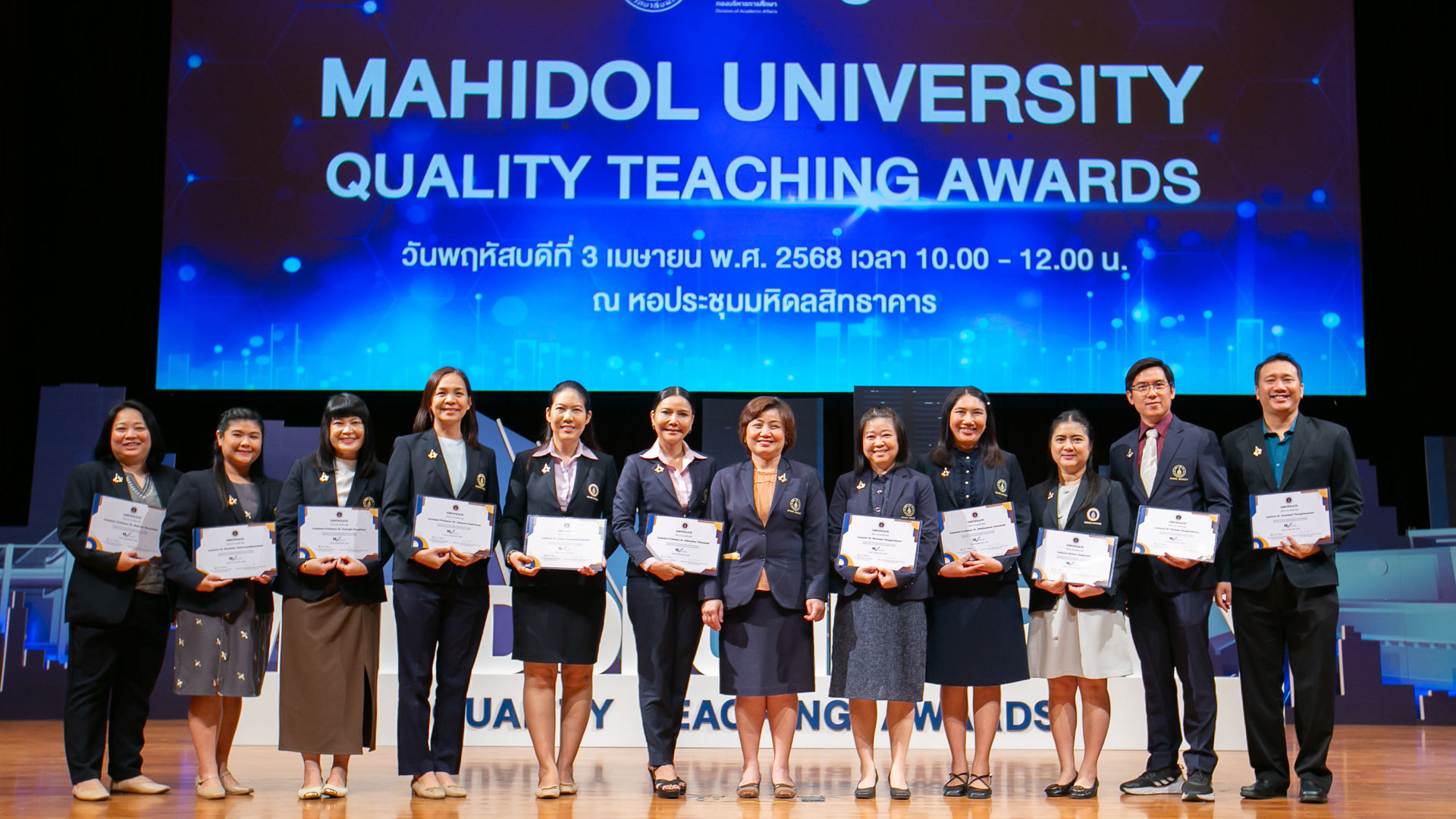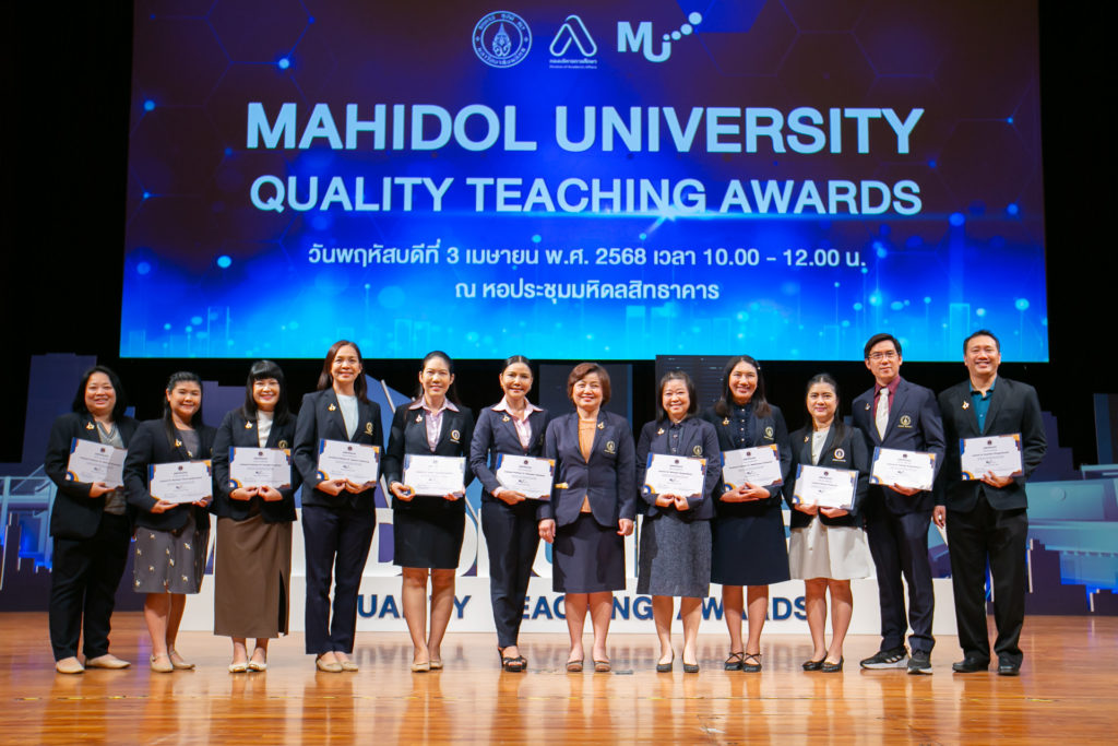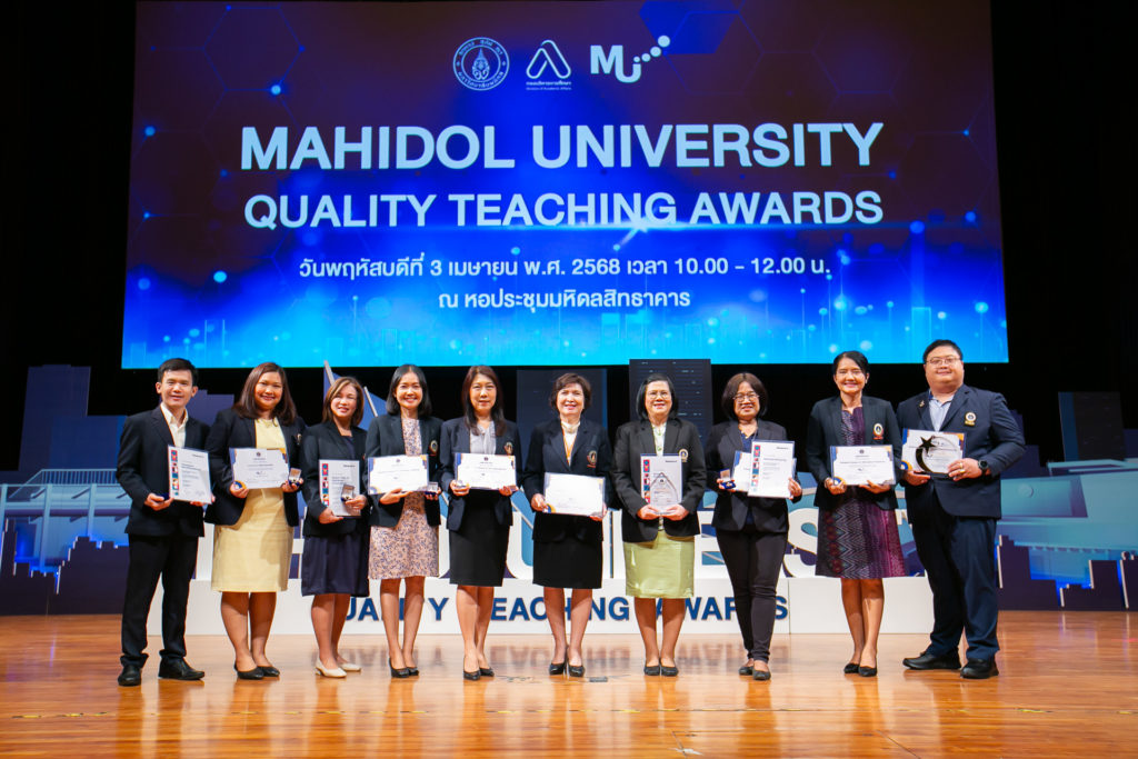 วันที่ 3 เมษายน 2568 ศาสตราจารย์ นายแพทย์ปิยะมิตร ศรีธรา อธิการบดีมหาวิทยาลัยมหิดล เป็นประธานในงาน Mahidol University Quality Teaching Awards พร้อมมอบประกาศนียบัตร และโล่รางวัล ให้แก่คณาจารย์ ของมหาวิทยาลัยมหิดล เพื่อเป็นการยกย่อง เชิดชูคณาจารย์ที่มีความโดดเด่นในด้านการจัดการเรียนการสอน โดยมี รองศาสตราจารย์ ดร. เภสัชกรเนติ สุขสมบูรณ์ รองอธิการบดีฝ่ายการศึกษา มหาวิทยาลัยมหิดล กล่าวรายงานผลการดำเนินงานที่ผ่านมา และ อาจารย์ ดร.ระพี บุญเปลื้อง รองคณบดีฝ่ายสื่อสารองค์กรและวิเทศสัมพันธ์ คณะวิทยาศาสตร์ มหาวิทยาลัยมหิดล เป็นผู้ดำเนินรายการ พร้อมด้วย ผู้บริหารมหาวิทยาลัยมหิดล ผู้บริหารส่วนงาน เข้าร่วมพิธี ณ หอประชุมมหิดลสิทธาคาร มหาวิทยาลัยมหิดล ศาลายา