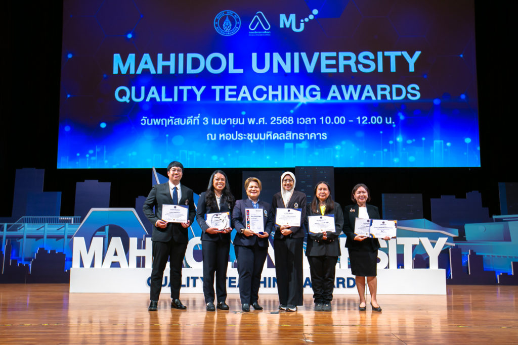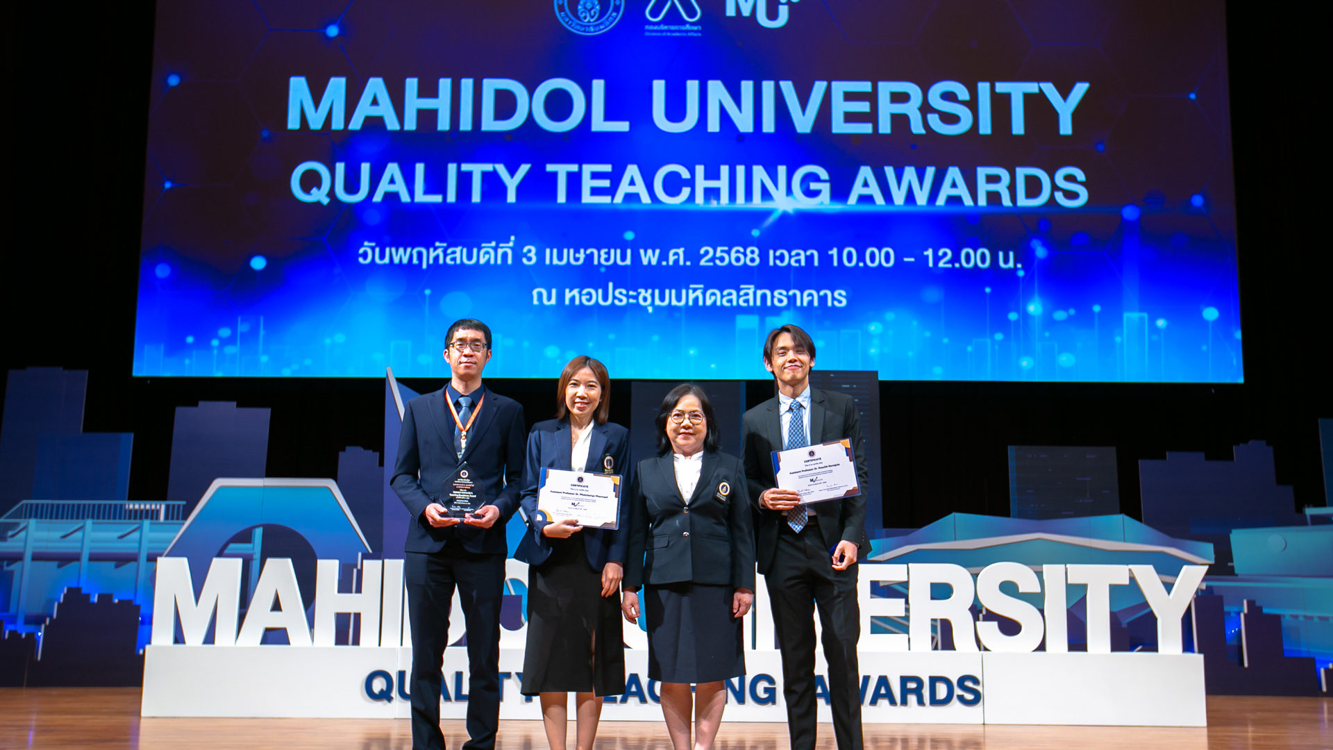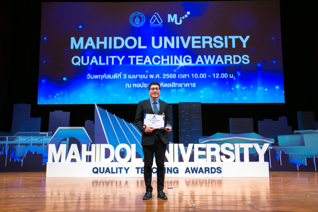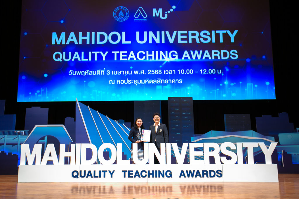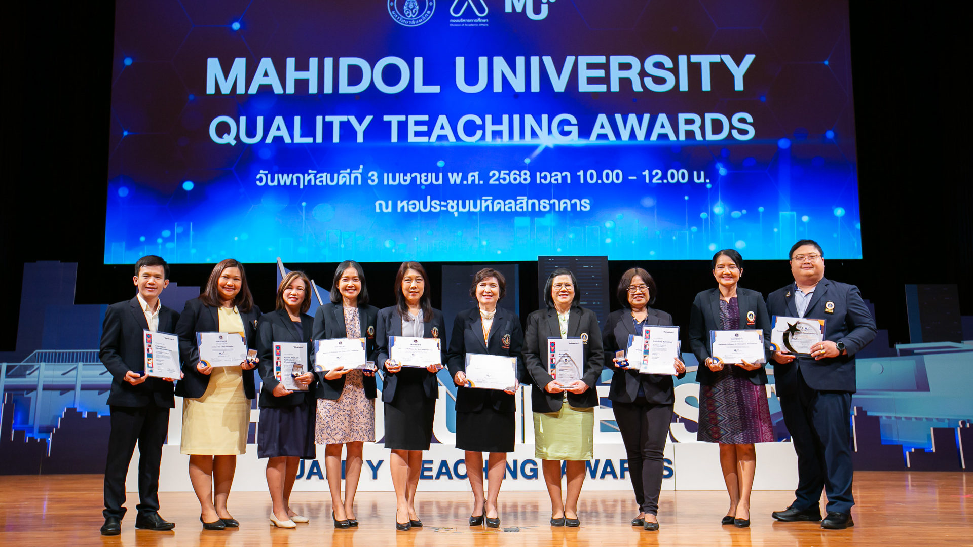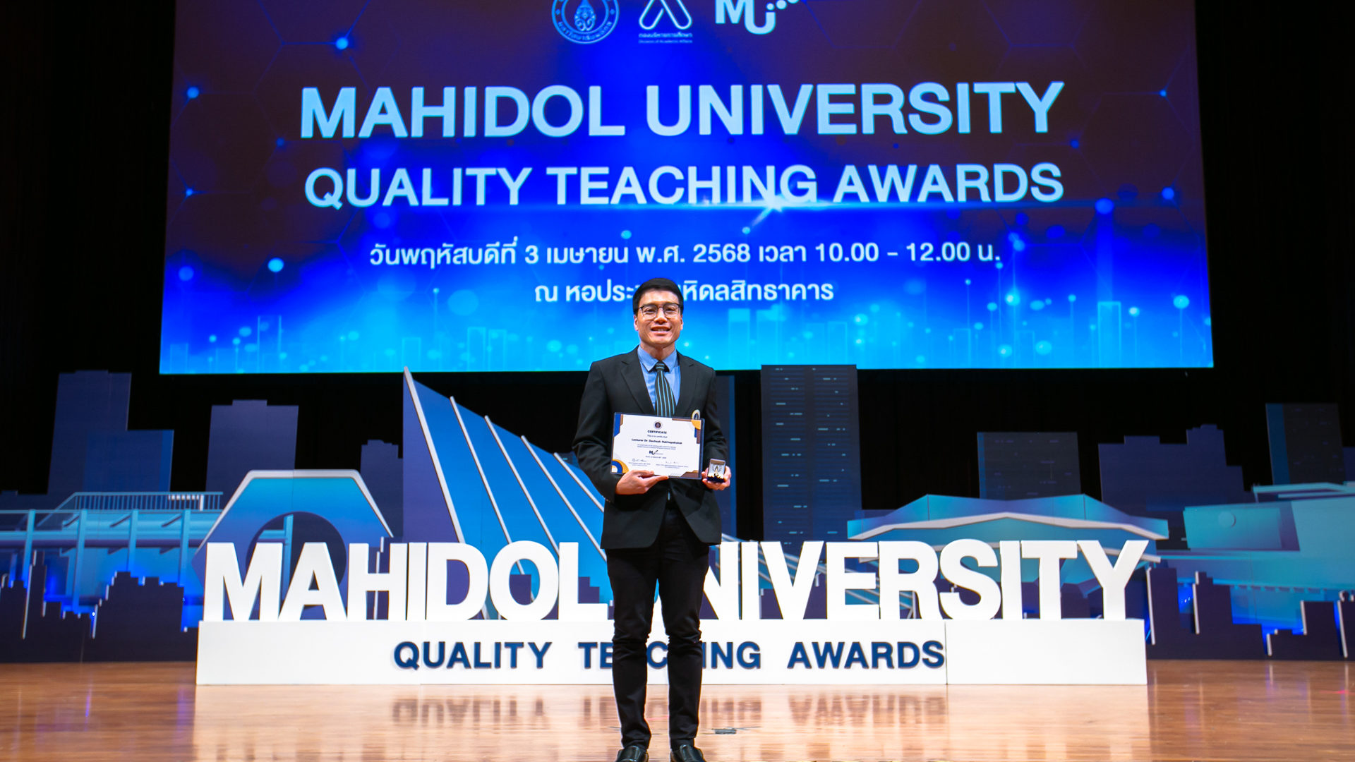 วันที่ 3 เมษายน 2568 ศาสตราจารย์ นายแพทย์ปิยะมิตร ศรีธรา อธิการบดีมหาวิทยาลัยมหิดล เป็นประธานในงาน Mahidol University Quality Teaching Awards พร้อมมอบประกาศนียบัตร และโล่รางวัล ให้แก่คณาจารย์ ของมหาวิทยาลัยมหิดล เพื่อเป็นการยกย่อง เชิดชูคณาจารย์ที่มีความโดดเด่นในด้านการจัดการเรียนการสอน โดยมี รองศาสตราจารย์ ดร. เภสัชกรเนติ สุขสมบูรณ์ รองอธิการบดีฝ่ายการศึกษา มหาวิทยาลัยมหิดล กล่าวรายงานผลการดำเนินงานที่ผ่านมา และ อาจารย์ ดร.ระพี บุญเปลื้อง รองคณบดีฝ่ายสื่อสารองค์กรและวิเทศสัมพันธ์ คณะวิทยาศาสตร์ มหาวิทยาลัยมหิดล เป็นผู้ดำเนินรายการ พร้อมด้วย ผู้บริหารมหาวิทยาลัยมหิดล ผู้บริหารส่วนงาน เข้าร่วมพิธี ณ หอประชุมมหิดลสิทธาคาร มหาวิทยาลัยมหิดล ศาลายา