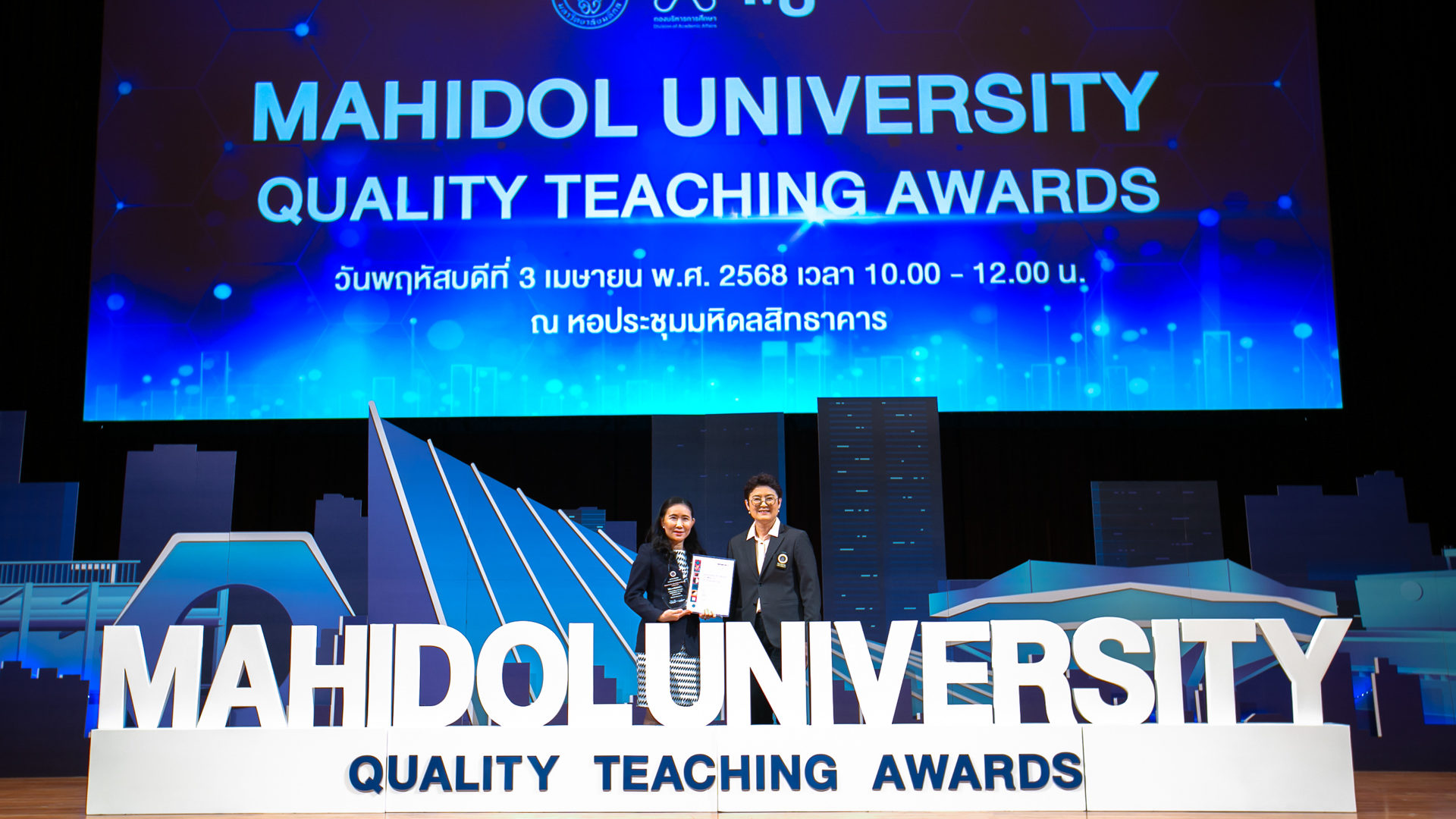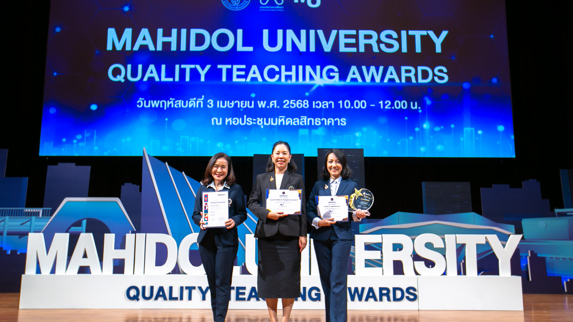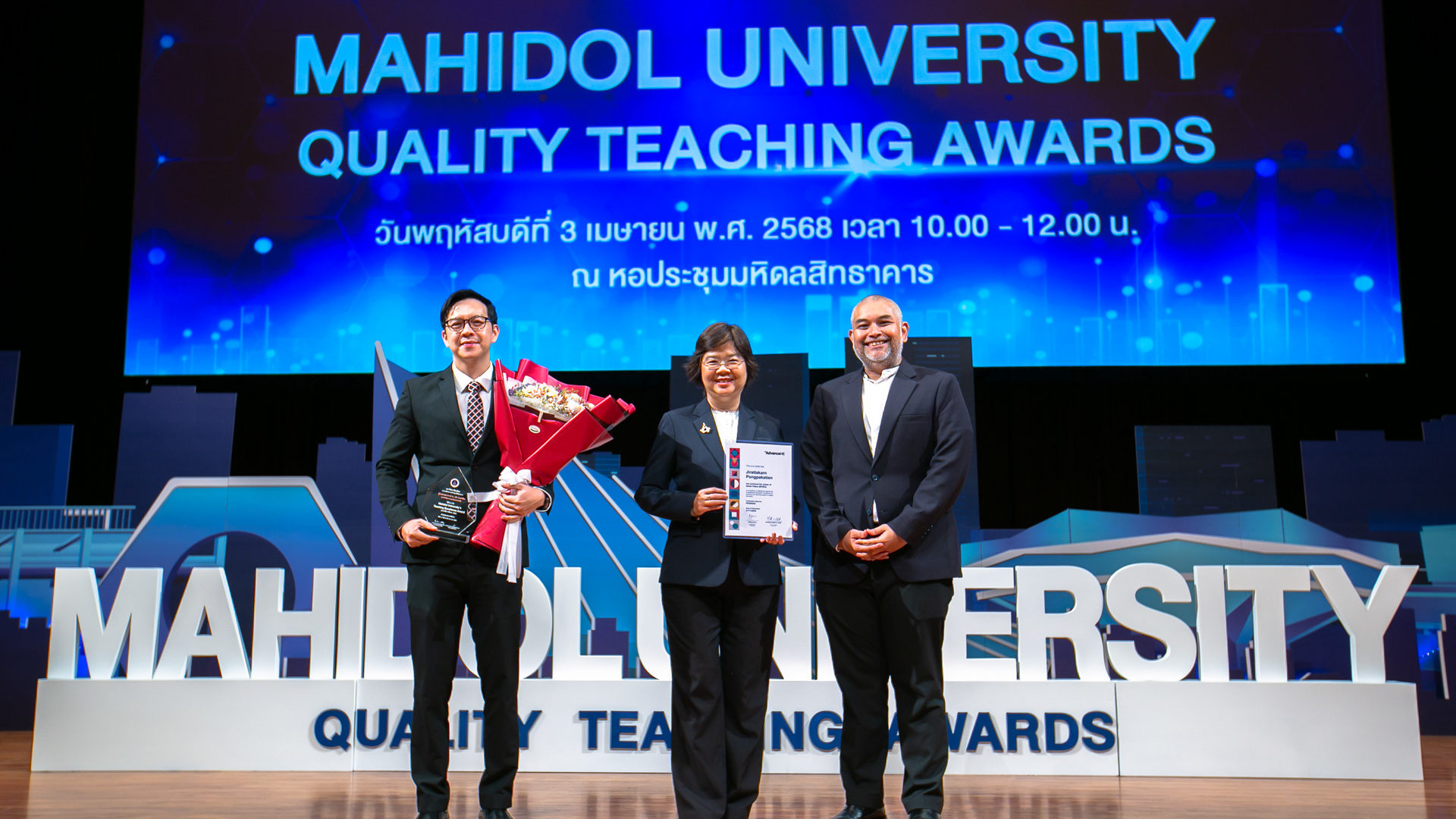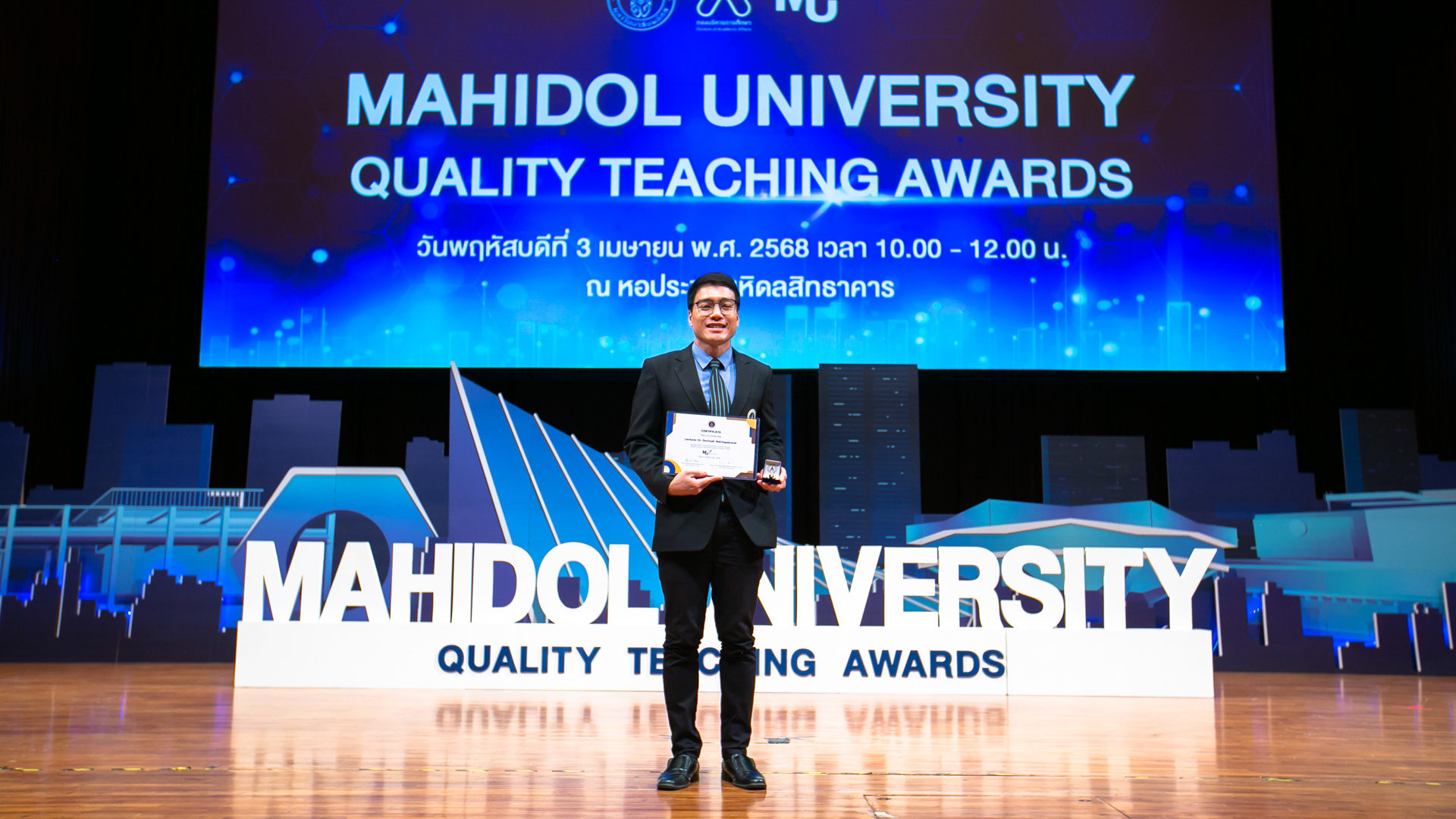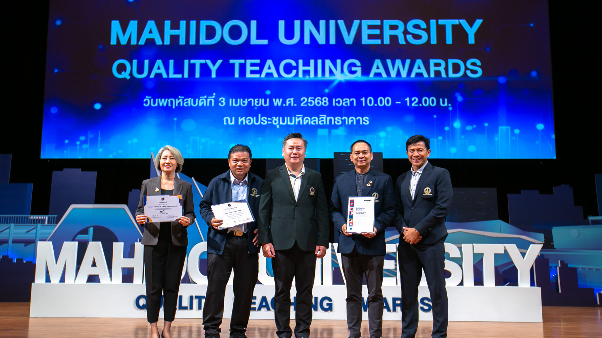 วันที่ 3 เมษายน 2568 ศาสตราจารย์ นายแพทย์ปิยะมิตร ศรีธรา อธิการบดีมหาวิทยาลัยมหิดล เป็นประธานในงาน Mahidol University Quality Teaching Awards พร้อมมอบประกาศนียบัตร และโล่รางวัล ให้แก่คณาจารย์ ของมหาวิทยาลัยมหิดล เพื่อเป็นการยกย่อง เชิดชูคณาจารย์ที่มีความโดดเด่นในด้านการจัดการเรียนการสอน โดยมี รองศาสตราจารย์ ดร. เภสัชกรเนติ สุขสมบูรณ์ รองอธิการบดีฝ่ายการศึกษา มหาวิทยาลัยมหิดล กล่าวรายงานผลการดำเนินงานที่ผ่านมา และ อาจารย์ ดร.ระพี บุญเปลื้อง รองคณบดีฝ่ายสื่อสารองค์กรและวิเทศสัมพันธ์ คณะวิทยาศาสตร์ มหาวิทยาลัยมหิดล เป็นผู้ดำเนินรายการ พร้อมด้วย ผู้บริหารมหาวิทยาลัยมหิดล ผู้บริหารส่วนงาน เข้าร่วมพิธี ณ หอประชุมมหิดลสิทธาคาร มหาวิทยาลัยมหิดล ศาลายา