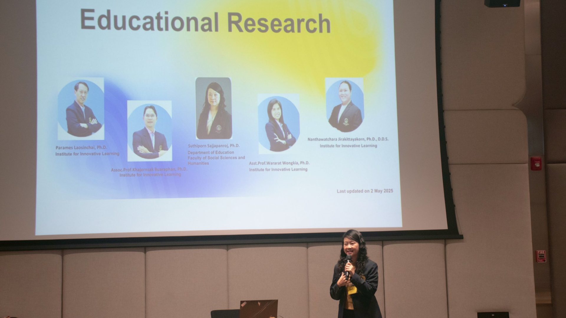 วันที่ 6 – 7 พฤษภาคม 2568 มหาวิทยาลัยมหิดล จัดโครงการพัฒนาศักยภาพอาจารย์มหาวิทยาลัยมหิดล ด้านการศึกษา ปีที่ 5 (Mahidol University Academic Development Program : MU-ADP#5) หัวข้อ พื้นฐานการวิจัยทางการศึกษา (Fundamental Educational Research) โดยมี รองศาสตราจารย์ ดร. เภสัชกรเนติ สุขสมบูรณ์ รองอธิการบดีฝ่ายการศึกษา มหาวิทยาลัยมหิดล เป็นประธานเปิดโครงการ โอกาสนี้ ได้รับเกียรติจาก อาจารย์ ดร.สุทธิพร สัจพันโรจน์ คณะสังคมศาสตร์และมนุษยศาสตร์ มหาวิทยาลัยมหิดล และทีมจากสถาบันนวัตกรรมการเรียนรู้ มหาวิทยาลัยมหิดล เป็นวิทยากรบรรยาย เพื่อมุ่งเน้นให้อาจารย์ผู้เข้าอบรมได้เข้าใจหลักการพื้นฐานและกระบวนการวิจัยทางการศึกษา เพื่อนำไปใช้ตั้งคำถาม หาคำตอบ และพัฒนาการเรียนรู้ได้อย่างเป็นระบบและมีประสิทธิภาพ ณ ศูนย์ประชุมและอาคารจอดรถมหิดลสิทธาคาร มหาวิทยาลัยมหิดล ศาลายา