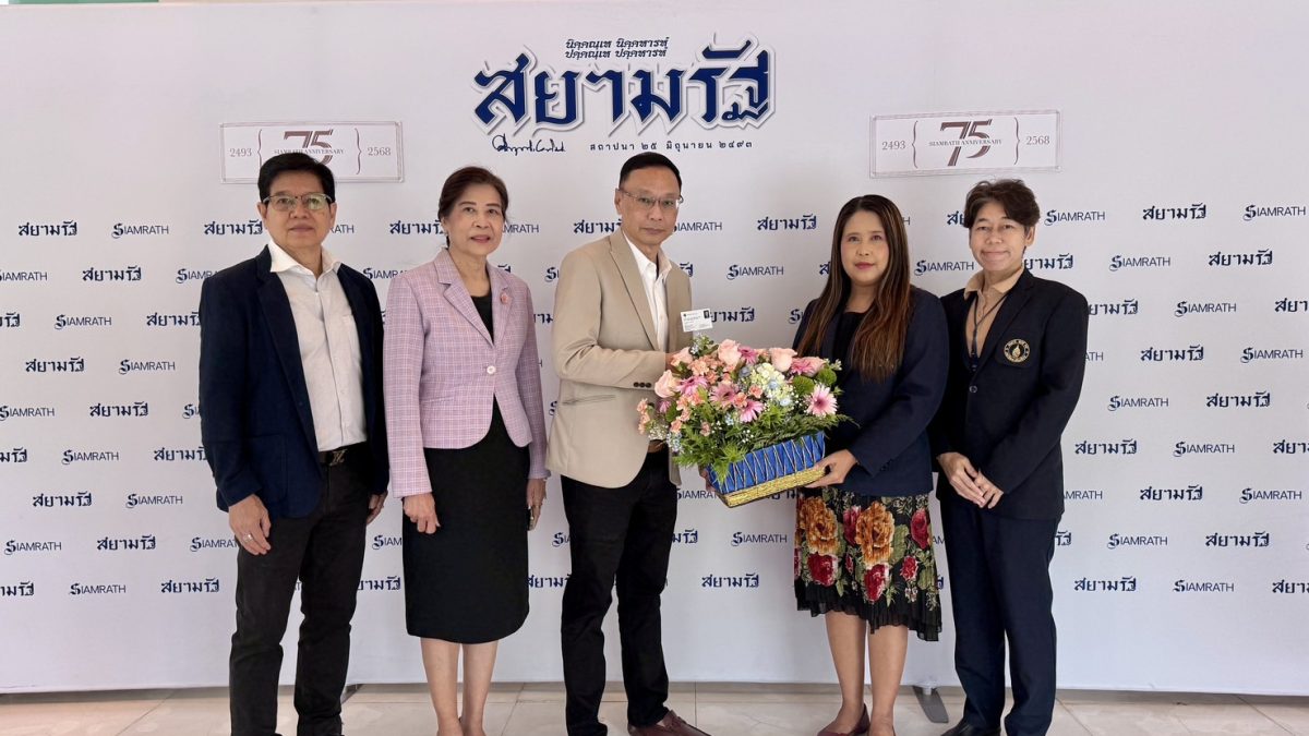 วันที่ 25 มิถุนายน 2568 งานสื่อสารองค์กร กองบริหารงานทั่วไป สำนักงานอธิการบดี มหาวิทยาลัยมหิดล ในนามผู้แทนอธิการบดี ร่วมแสดงความยินดีเนื่องในโอกาสครบรอบ 75 ปี หนังสือพิมพ์สยามรัฐ โดยมี นายวิโรจน์ วัฒนธาดากุล บรรณาธิการบริหาร หนังสือพิมพ์สยามรัฐ ให้การต้อนรับ ณ สำนักงานหนังสือสยามรัฐ แขวงบางยี่ขัน เขตบางพลัด กรุงเทพมหานคร
