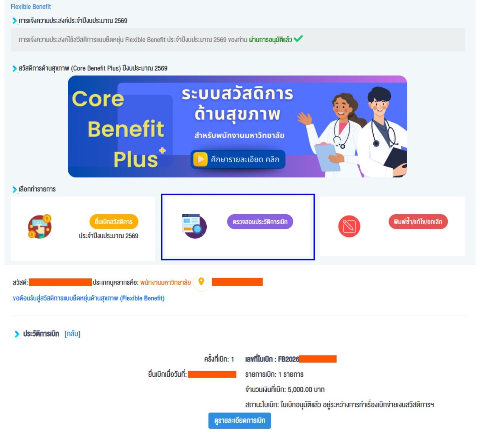 | เป็น โครงการนำร่อง (Sandbox) 2 ปี เพื่อให้พนักงานมหาวิทยาลัย (เงินอุดหนุน) เบิกค่ารักษาพยาบาลสำหรับตนเองได้เพิ่มขึ้น โดยระหว่าง 2 ปีนี้จะเก็บรวบรวมข้อมูลการเบิกจ่ายค่ารักษาพยาบาลและนำมาศึกษาเพื่อหาแนวทางการขยายผลในระยะต่อไป |