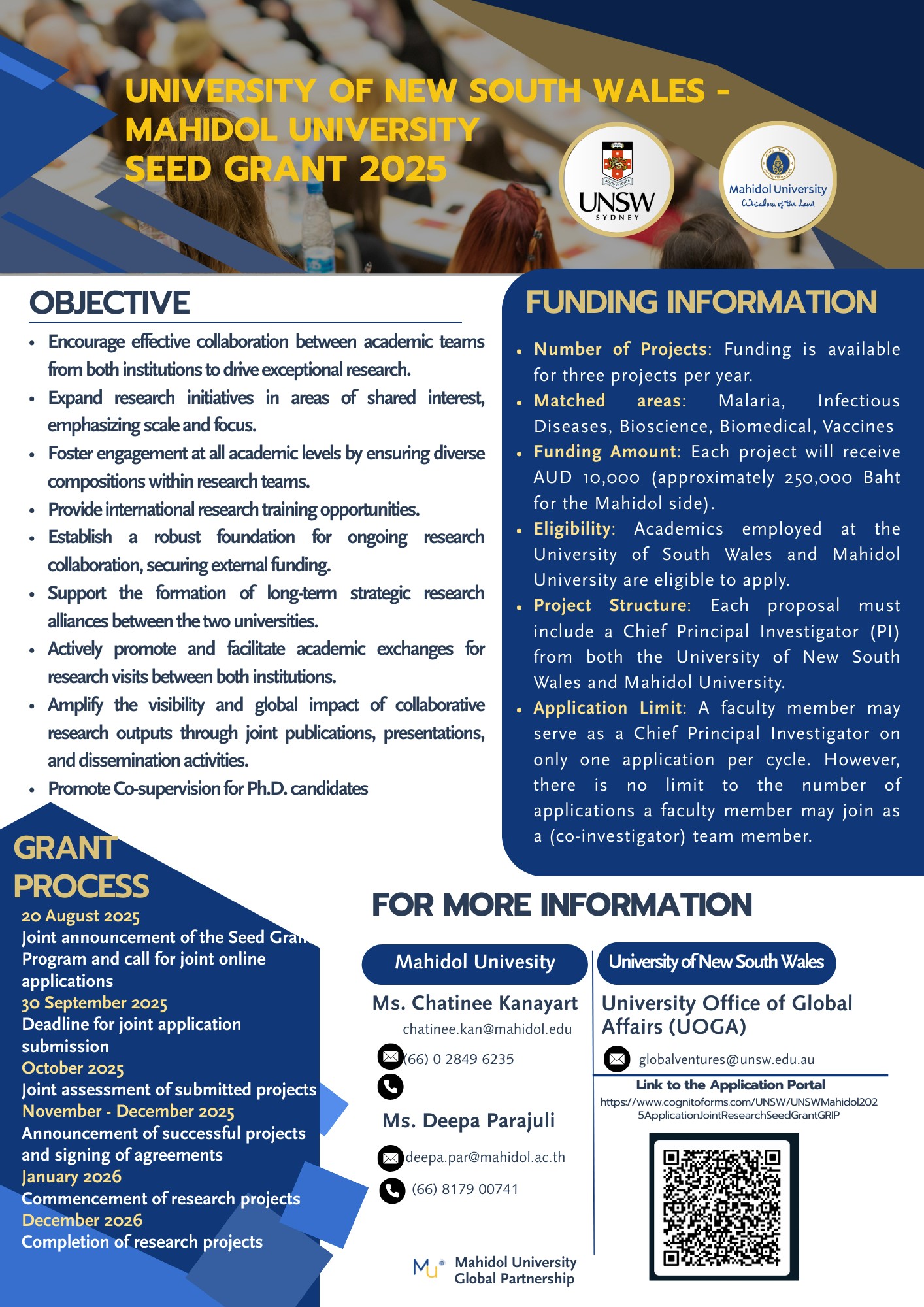 Mahidol University Announcement University of New South Wales – Mahidol Seed Grant Year 2025