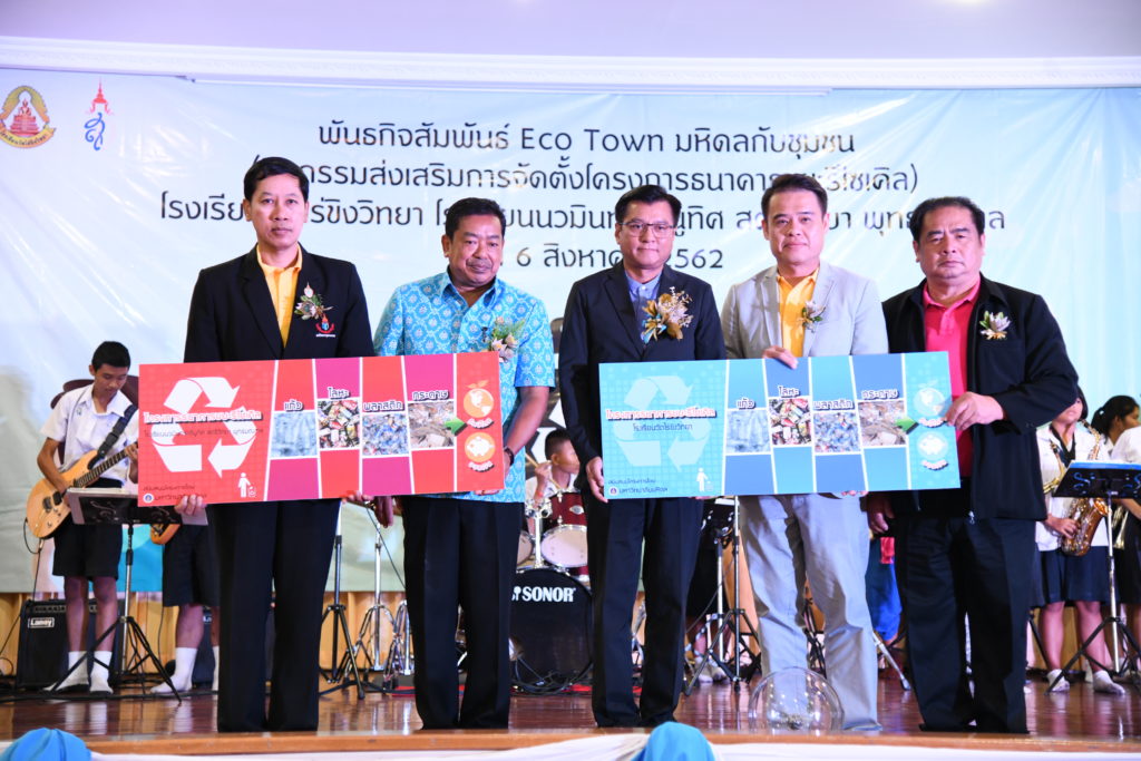 โครงการพันธกิจสัมพันธ์ Eco Town มหิดลกับชุมชนนี้ มีวัตถุประสงค์เพื่อส่งเสริมการจัดตั้งโครงการธนาคารขยะรีไซเคิลในโรงเรียนและถ่ายทอดองค์ความรู้เรื่องของการคัดแยกขยะให้แก่นักเรียน ครู รวมถึงผู้ปกครอง