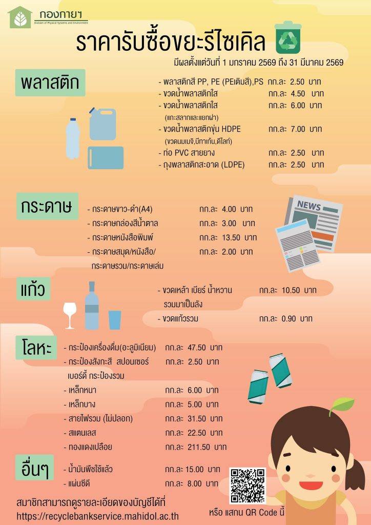 การดำเนินโครงการ (2552–2567) มีสมาชิกที่สมัครเข้าร่วมโครงการ 2,377 คน และสมาชิกทั่วไปอีกจำนวน 5,000 คน มียอดรวมปริมาณขยะรีไซเคิล 2,338,158.92 กิโลกรัม มียอดรวมการรับซื้อขยะรีไซเคิลจากสมาชิก จำนวน 12,440,164.03 บาท และมีผลกำไร 10% จากการจำหน่ายขยะรีไซเคิลและนำฝากเข้ากองทุนกิจกรรมอนุรักษ์สิ่งแวดล้อม มหาวิทยาลัยมหิดล จำนวน 1,993,606.08 บาท