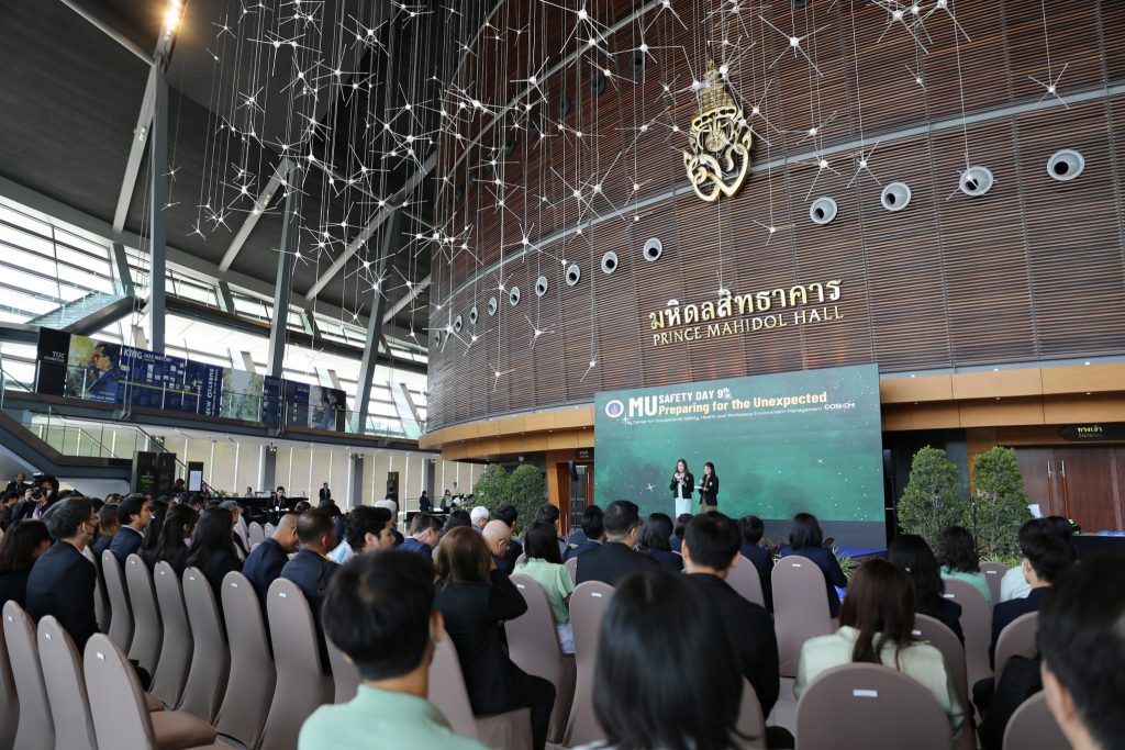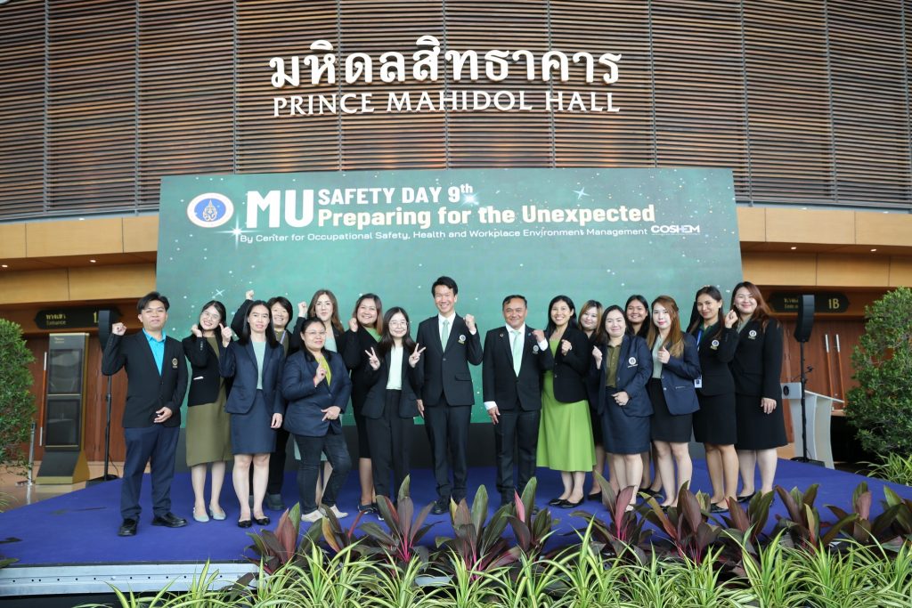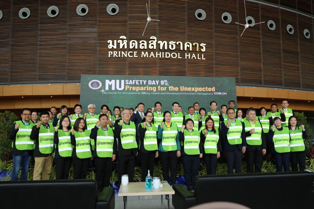 วันที่ 28 เมษายน 2568 ศาสตราจารย์ นายแพทย์ปิยะมิตร ศรีธรา อธิการบดีมหาวิทยาลัยมหิดล เป็นประธานเปิดโครงการ “Safety Day รณรงค์อาชีวอนามัยและความปลอดภัย” ครั้งที่ 9 โดยมี ผู้ช่วยศาสตราจารย์ ดร.อิทธิโชติ จักรไพวงศ์ รองอธิการบดีฝ่ายกายภาพและสิ่งแวดล้อม มหาวิทยาลัยมหิดล กล่าวรายงานผลการดำเนินด้านความปลอดภัย อาชีวอนามัย และสภาพแวดล้อมในการทำงานของมหาวิทยาลัยมหิดล พร้อมนำเสนอแนวทางการดำเนินด้านความปลอดภัยของมหาวิทยาลัยมหิดล ประจำปี 2568 ซึ่งศูนย์บริหารความปลอดภัย อาชีวอนามัย และสภาพแวดล้อมในการทำงาน (COSHEM) มหาวิทยาลัยมหิดล จัดขึ้นเพื่อรณรงค์ให้บุคลากรและผู้ปฏิบัติงาน ตระหนักถึงเรื่องความปลอดภัยในการทำงาน และดำเนินงานตามนโยบายด้านความปลอดภัยภายในมหาวิทยาลัยอย่างต่อเนื่อง ให้สอดคล้องตามที่กฎหมายกำหนดและเป็นไปตามมาตรฐานสากล ในโอกาสนี้ มีกิจกรรมแลกเปลี่ยนเรียนรู้ “การจัดทำและฝึกซ้อมแผนการตอบโต้ภาวะฉุกเฉิน ระดับส่วนงาน โดยได้รับเกียรติจากผู้แทนจาก 4 ส่วนงาน ต้นแบบมาตรฐานด้านความปลอดภัย ณ โถงรับรอง มหิดลสิทธาคาร มหาวิทยาลัยมหิดล