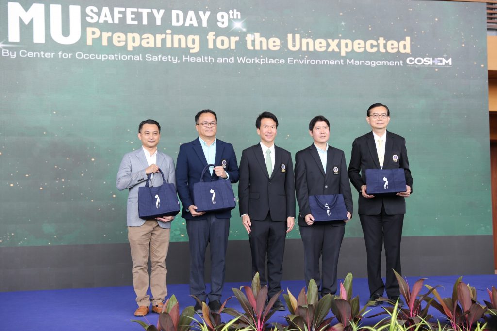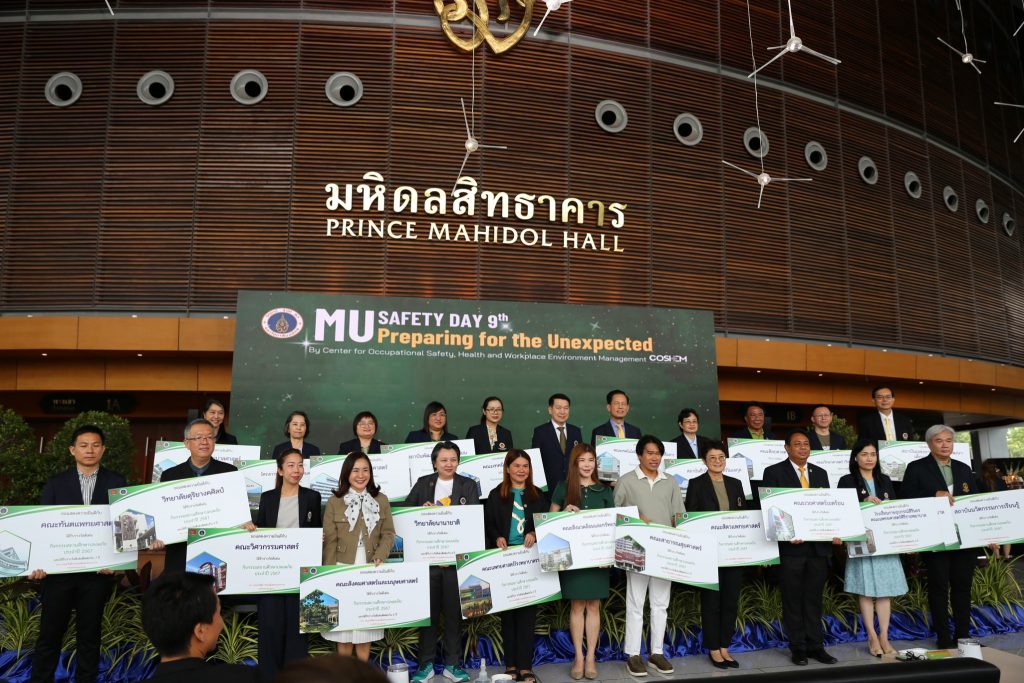 จากนั้น มีพิธีมอบของเชิงสัญลักษณ์ด้านความปลอดภัยแก่ส่วนงานที่เข้าร่วมงาน พิธีมอบรางวัลสถานศึกษาปลอดภัย ประจำปี 2567 จำนวน 24 ส่วนงาน พิธีมอบเกียรติบัตรการเข้าร่วม MU Safety Standard ประจำปี 2567 จำนวน 25 ส่วนงาน พิธีมอบรางวัลและตราสัญลักษณ์ของห้องปฏิบัติการในรูปแบบ Peer Evaluation จำนวน 69 ห้องปฏิบัติการ และพิธีมอบโล่รางวัลโล่รางวัลห้องปฏิบัติการต้นแบบด้านปลอดภัย ประจำปี 2567 จำนวน 12 ห้องปฏิบัติการ