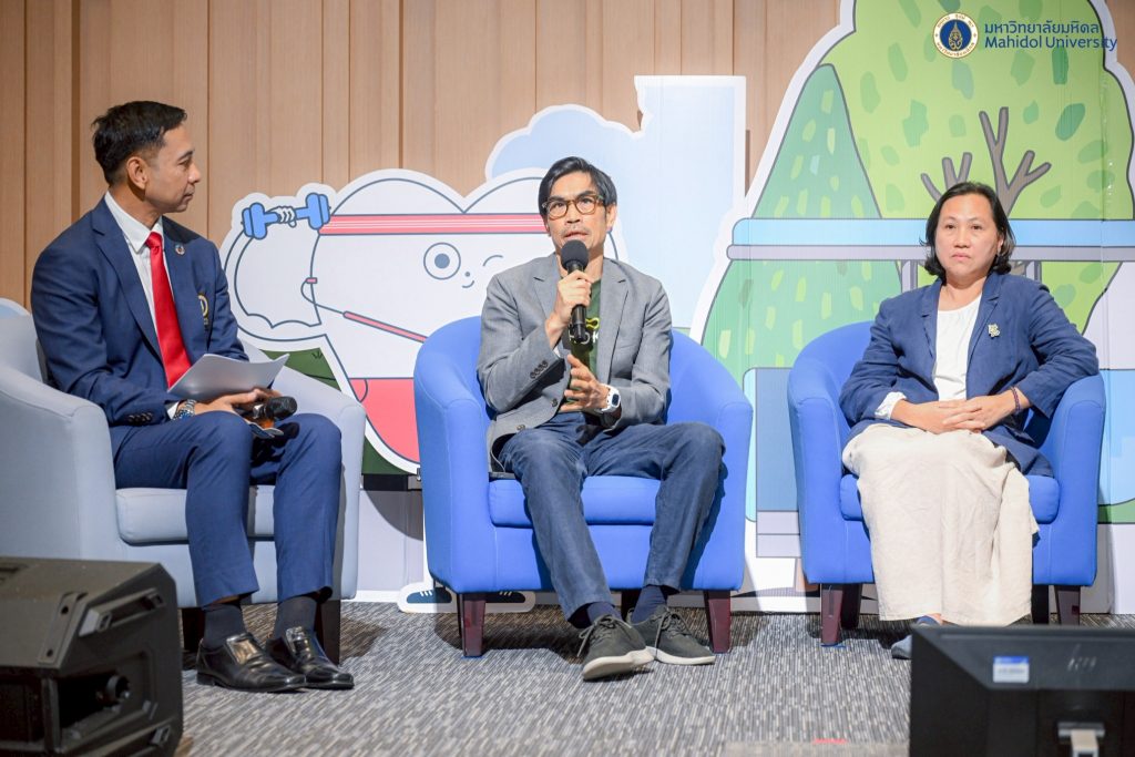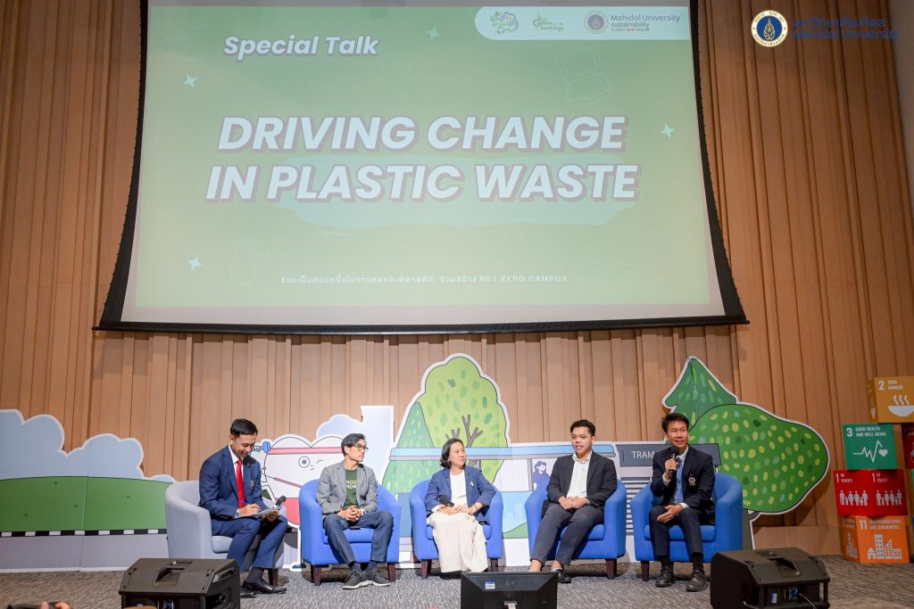 ภายในงานมีการเสวนาหัวข้อ “Driving Change in Plastic Waste” เพื่อแลกเปลี่ยนแนวทางจัดการปัญหาขยะพลาสติก ตามเป้าหมายการพัฒนาอย่างยั่งยืน (SDGs) โดยมีวิทยากรหลากหลายสาขาร่วมแลกเปลี่ยนความคิดเห็น ประกอบด้วย ผู้ช่วยศาสตราจารย์ ดร.อิทธิโชติ จักรไพวงศ์ รองอธิการบดีฝ่ายกายภาพและสิ่งแวดล้อม มหาวิทยาลัยมหิดล คุณอรุษ นวราช กรรมการผู้จัดการ บริษัท สวนสามพราน จำกัด คุณศิริลักษณ์ ริ้วบำรุง เจ้าของ Little Tree Garden และ Whispering Café และคุณสหรัถ ชวฤาชัย นักศึกษาคณะวิศวกรรมศาสตร์ ดำเนินรายการโดย อาจารย์ ดร.ระพี บุญเปลื้อง คณะวิทยาศาสตร์ มหาวิทยาลัยมหิดล