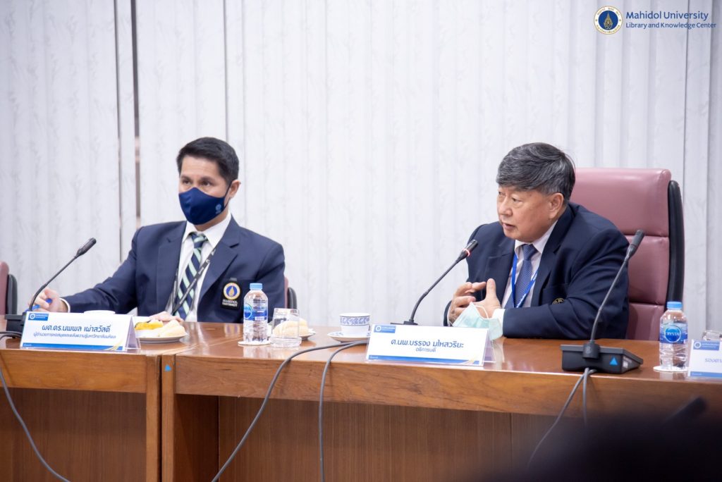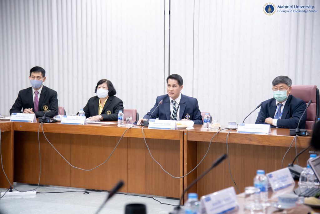 เมื่อวันที่ 21 ตุลาคม 2563 เวลา 08.45 – 10.15 น. ศาสตราจารย์ นายแพทย์บรรจง มไหสวริยะ อธิการบดีมหาวิทยาลัยมหิดล พร้อมด้วยคณะผู้บริหารมหาวิทยาลัยมหิดล เข้ารับฟังข้อตกลงการปฏิบัติงานของส่วนงาน (PA-Visit) ประจำปีงบประมาณ 2564 ของหอสมุดและคลังความรู้มหาวิทยาลัยมหิดล โดยมี ผู้ช่วยศาสตราจารย์ ดร. นพพล เผ่าสวัสดิ์ ผู้อำนวยการ หอสมุดและคลังความรู้มหาวิทยาลัยมหิดล พร้อมด้วยคณะผู้บริหารให้การต้อนรับตามลำดับ ในการนี้ อธิการบดีได้มอบหมายทิศทางการบริหารมหาวิทยาลัย พร้อมแลกเปลี่ยนข้อคิดเห็นร่วมกันระหว่างมหาวิทยาลัยและส่วนงาน
