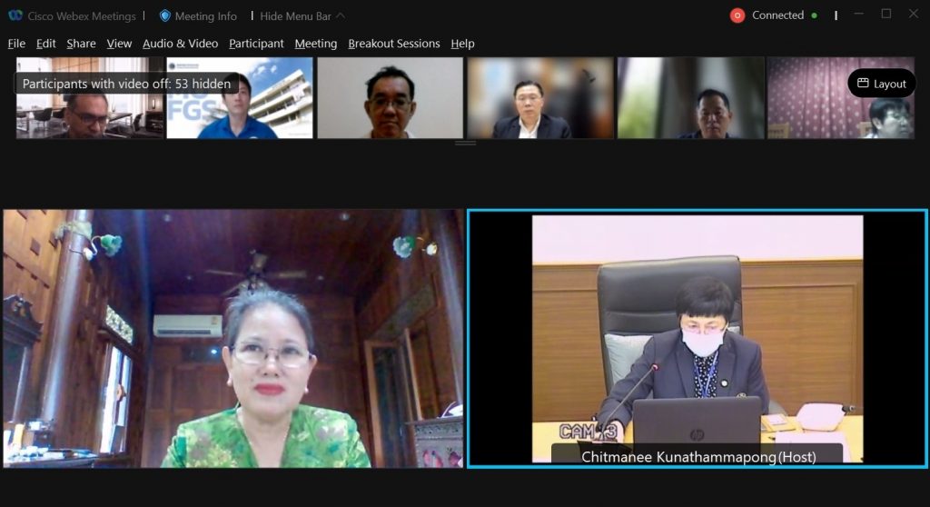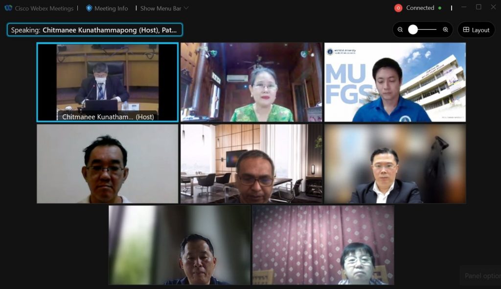เมื่อวันที่ 15 ตุลาคม 2564 เวลา 10.30 – 12.00 น. ศาสตราจารย์ นายแพทย์บรรจง มไหสวริยะ อธิการบดีมหาวิทยาลัยมหิดล พร้อมด้วยคณะผู้บริหารมหาวิทยาลัยมหิดล เข้ารับฟังข้อตกลงการปฏิบัติงานของส่วนงาน (PA-Visit) ประจำปีงบประมาณ 2565 ของบัณฑิตวิทยาลัย ผ่านระบบการประชุมออนไลน์โดยโปรแกรม Cisco Webex Meetings โดยมี ศาสตราจารย์ ดร.แพทย์หญิงพัชรีย์ เลิศฤทธิ์ คณบดีบัณฑิตวิทยาลัย พร้อมด้วยคณะผู้บริหารและบุคลากรเข้าร่วมกิจกรรมในครั้งนี้ ในการนี้ อธิการบดีได้มอบหมายทิศทางการบริหารมหาวิทยาลัย พร้อมแลกเปลี่ยนข้อคิดเห็นร่วมกันระหว่างมหาวิทยาลัยและส่วนงาน