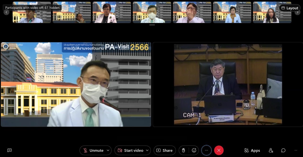 วันที่ 21 ธันวาคม 2565 เวลา 08.45-10.15 น. ศาสตราจารย์ นายแพทย์บรรจง มไหสวริยะ อธิการบดี มหาวิทยาลัยมหิดล พร้อมด้วยคณะผู้บริหารมหาวิทยาลัยมหิดล เข้ารับฟังข้อตกลงการปฏิบัติงานของส่วนงาน (PA-Visit) ประจำปีงบประมาณ 2566 ของบัณฑิตวิทยาลัย โดยมี ศาสตราจารย์ ดร. แพทย์หญิงพัชรีย์ เลิศฤทธิ์ คณบดีบัณฑิตวิทยาลัย พร้อมด้วยผู้บริหารคณะฯ ให้การต้อนรับ และนำเสนอผลการดำเนินงาน พร้อมรับฟังข้อเสนอแนะในการดำเนินงาน ในปีงบประมาณ 2566 ในรูปแบบ Online ณ ห้องประชุม 515 สำนักงานอธิการบดี ศาลายา