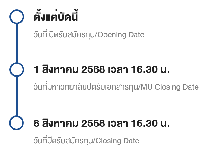 | วันที่มหาวิทยาลัยปิดรับเอกสารทุน/MU Closing Date | 1 สิงหาคม 2568 เวลา 16.30 น. |