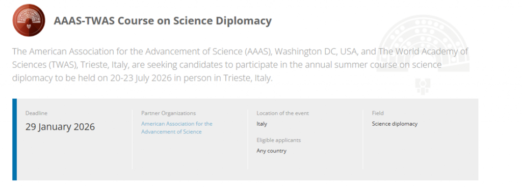 โครงการฝึกอบรมด้านการทูตวิทยาศาสตร์ AAAS–TWAS Science Diplomacy Training Program