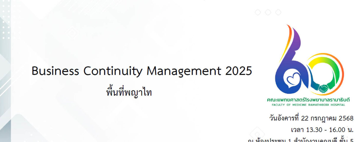 วันอังคารที่ 22 กรกฎาคม 2568 เวลา 13.30-15.30 น. ผู้อำนวยการศูนย์บริหารจัดการความเสี่ยง และบุคลากรกลุ่มงานบริหารความต่อเนื่อง ศูนย์บริหารจัดการความเสี่ยง เข้าร่วมสังเกตการณ์การประชุมเพื่อสรุปแผนความต่อเนื่องในการดำเนินงานและแจ้งการซ้อมแผนความต่อเนื่องในการดำเนินงาน (Business Continuity Plan : BCP) ของพื้นที่พญาไท ประจำปีงบประมาณ พ.ศ. 2568 ” จัดโดยคณะแพทยศาสตร์โรงพยาบาลรามาธิบดี ผ่านสื่ออิเล็กทรอนิกส์ Cisco Webex Meeting