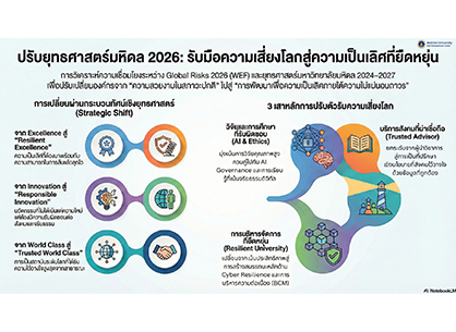Infographic :ปรับยุทธศาสตร์มหิดล 2026 : รับมือความเสี่ยงโลกสู่ความเป็นเลิศที่ยืดหยุ่น