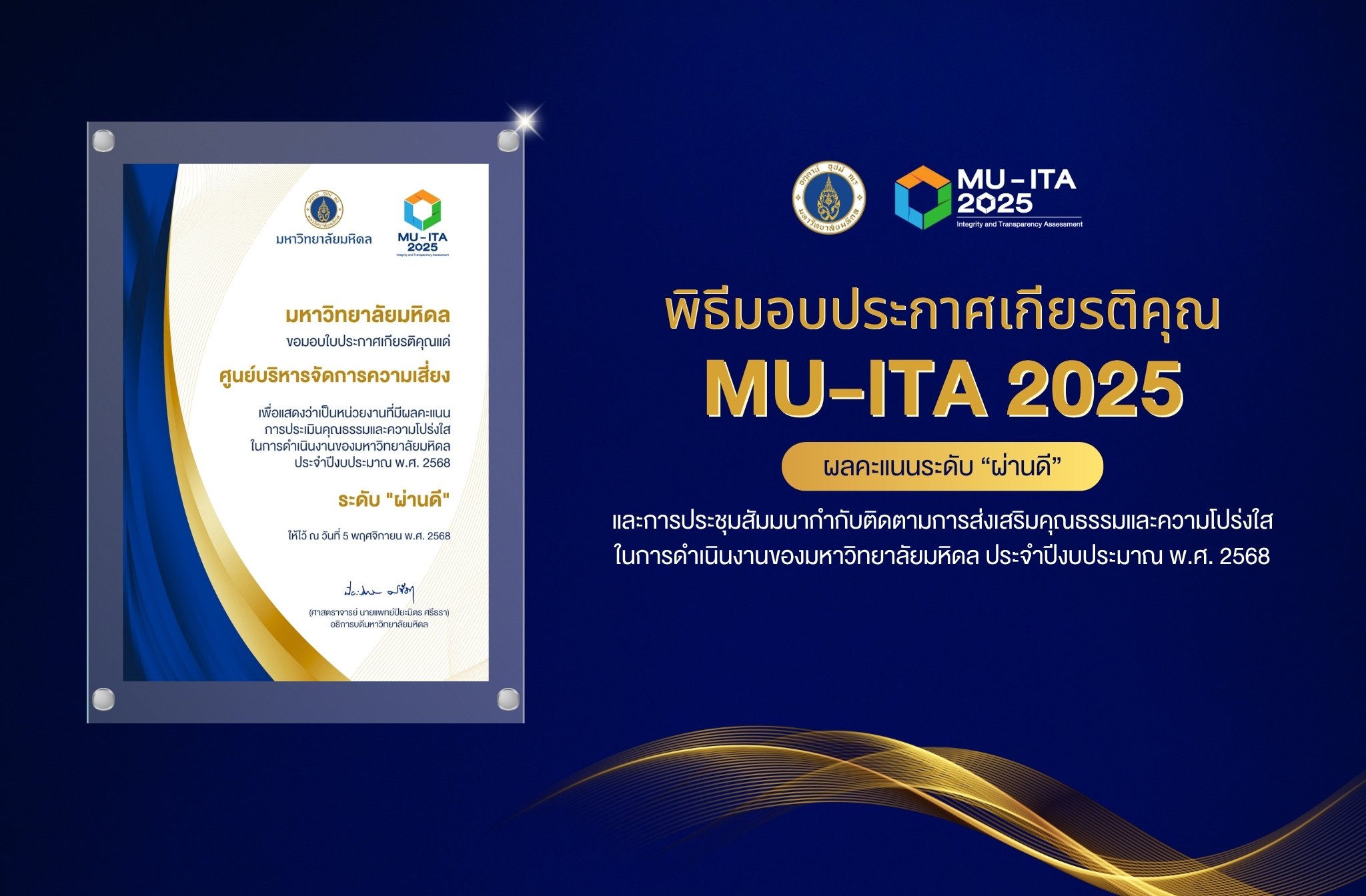 ศูนย์บริหารจัดการความเสี่ยง มหาวิทยาลัยมหิดล