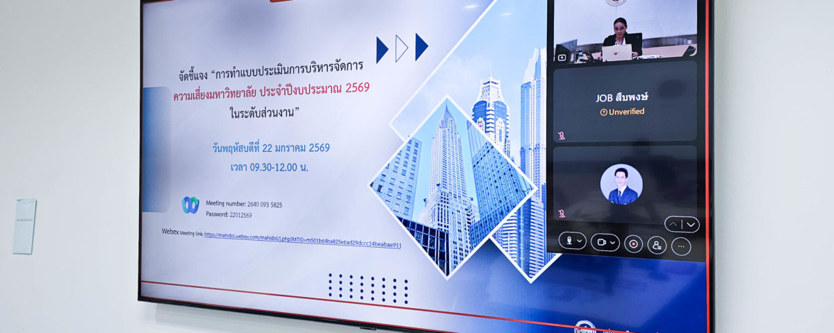วันพฤหัสบดีที่ 22 มกราคม 2569 เวลา 9.00 – 12.15 น. ศูนย์บริหารจัดการความเสี่ยง จัดชี้แจงเรื่อง “ประเด็นความเสี่ยงมหาวิทยาลัย ประจำปีงบประมาณ 2569 และแนวทางการบริหารจั