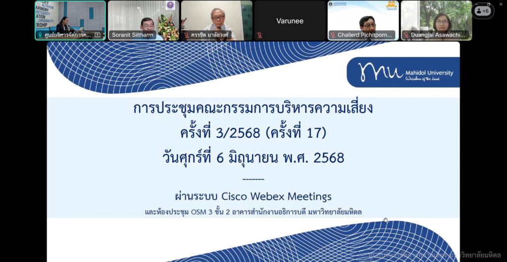 การประชุมคณะกรรมการบริหารจัดการความเสี่ยง มหาวิทยาลัยมหิดล ครั้งที่ 84 (ครั้งที่ 4/2568) # 25 ส.ค. 2568