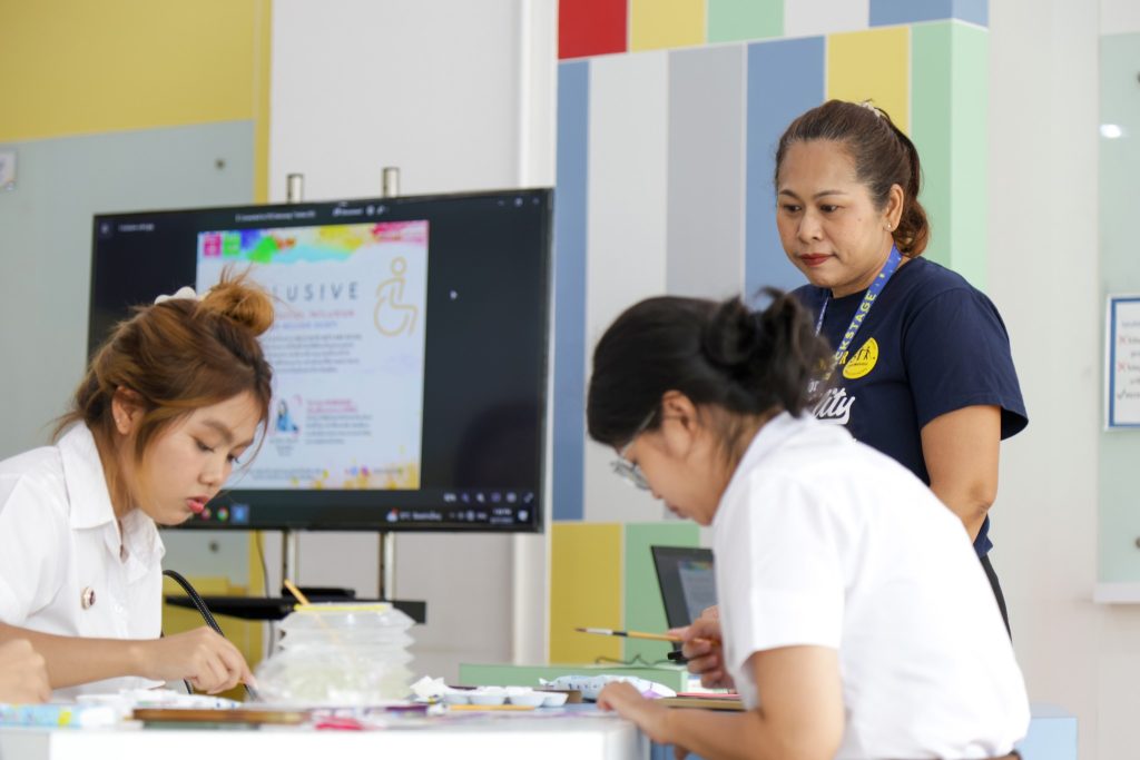กิจกรรม Inclusive Colors เป็นกิจกรรม workshop เรียนรู้ศิลปะผ่านการใช้สีน้ำ เปิดโอกาสในน้อง ๆ ได้สร้างสรรค์งานศิลปะด้วยสีน้ำ ในการทำที่คั่นหนังสือ และนำเสนอในเรื่องความเท่าเทียม การอยู่ร่วมกันในสังคม