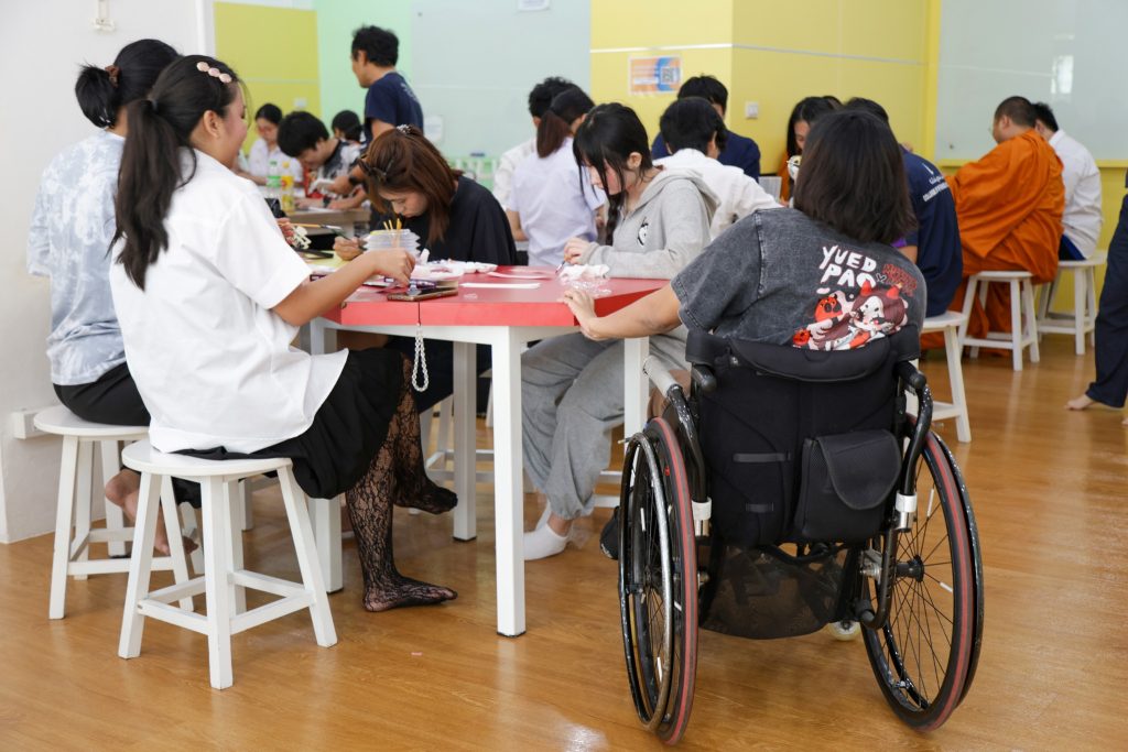 เมื่อวันพุธที่ 27 สิงหาคม 2568 หน่วยบริการสนับสนุนสำหรับนักศึกษาพิการ กองกิจการนักศึกษา มหาวิทยาลัยมหิดล ได้จัดโครงการ Inclusive Arts and Social Inclusion ซึ่งเป็นโครงการที่จัดขึ้นโดยใช้ศิลปะในรูปแบบต่าง ๆ เพื่อเชื่อมความสัมพันธ์ระหว่าง นักศึกษาพิการและนักศึกษาทั่วไป ให้มีโอกาสแลกเปลี่ยนเรียนรู้ซึ่งกันและกัน สร้างสังคมที่ทุกคนสามารถอยู่ร่วมกันได้อย่างเท่าเทียมให้เกิดขึ้นในมหาวิทยาลัยมหิดล กิจกรรมได้รับเกียรติจากคุณปริศนา ขันแก้ว (ศิลปินอิสระ) มาเป็นวิทยากร ณ ห้องอุ่นไอรัก หอพักนักศึกษา มหาวิทยาลัยมหิดล