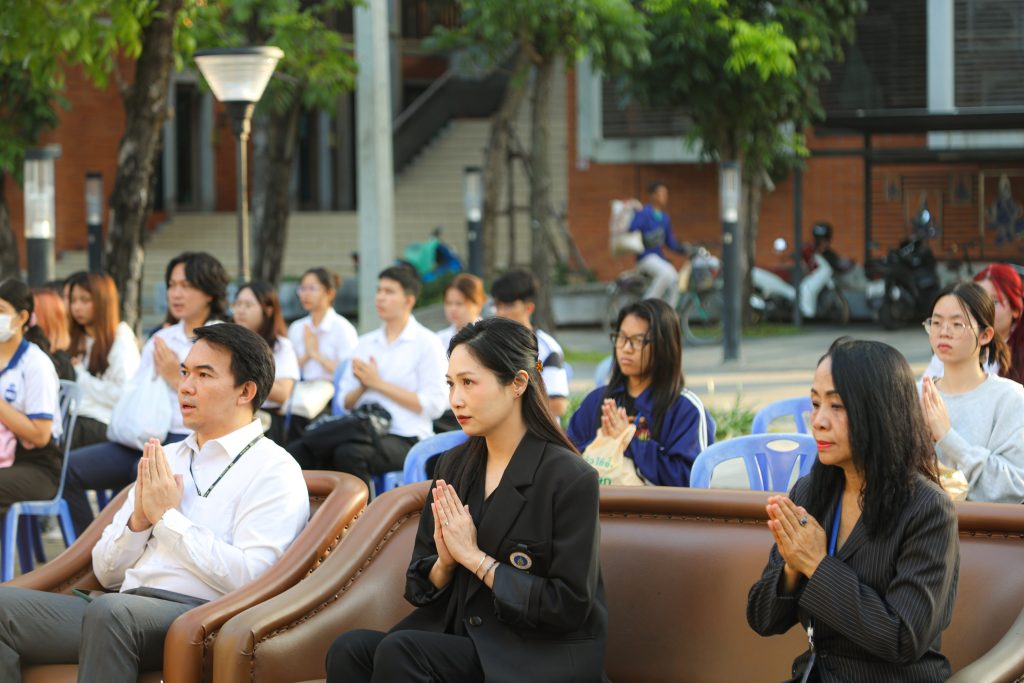 ในพิธีได้รับเกียรติจาก อาจารย์ ดร.พิมพนิต คอนดี ผู้ช่วยอธิการบดีฝ่ายกิจการนักศึกษาและศิษย์เก่าสัมพันธ์ เป็นประธานในการจุดธูปเทียนบูชาพระรัตนตรัย และนำคณะบุคลากรและนักศึกษาเข้าร่วมในพิธีสำคัญ
