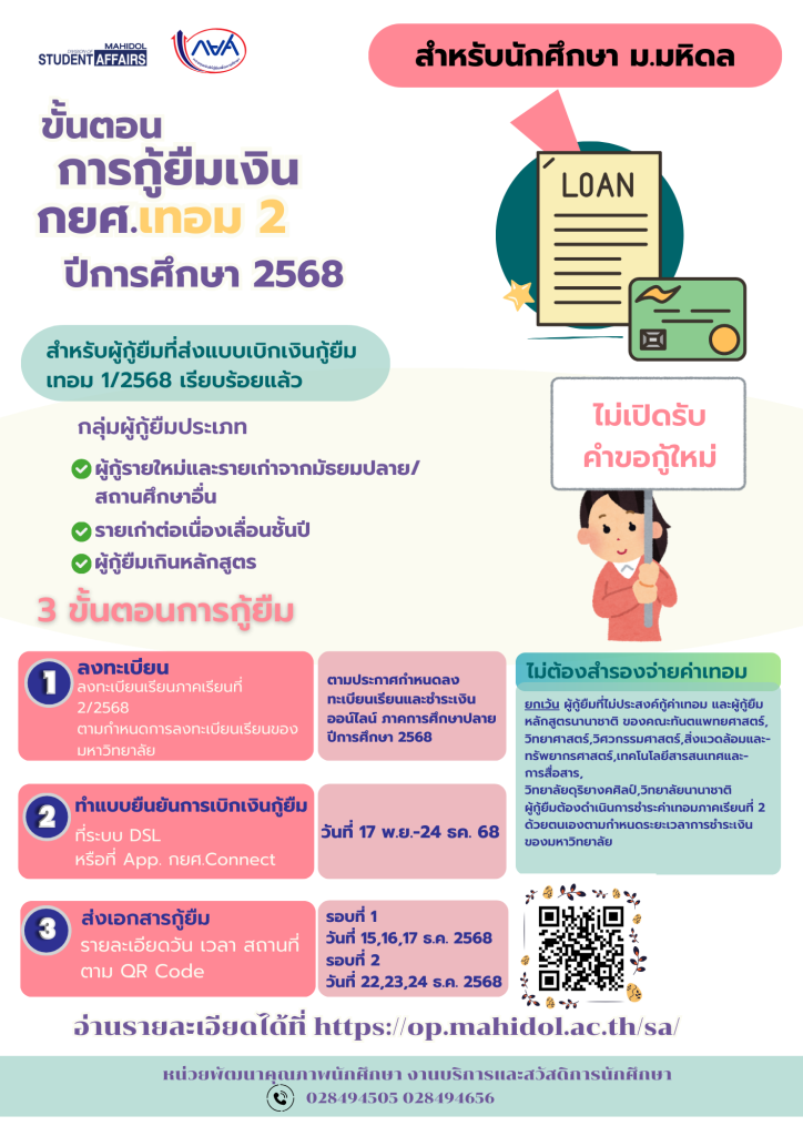 📌 แจ้งกำหนดการกู้ยืม กยศ. เทอม 2/2568