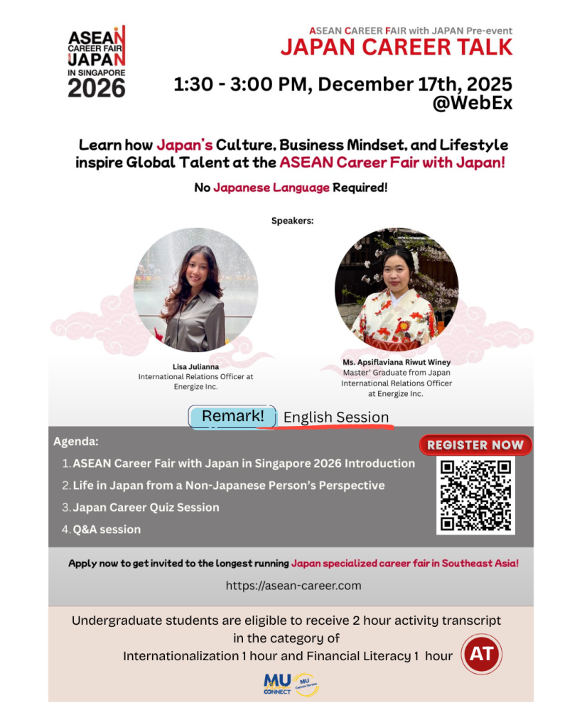 📍 Special Online Lecture “Learn how Japan’s Culture, Business Mindset, and lifestyle inspire Global Talent at the ASEAN Career Fair with Japan!” (English Session)