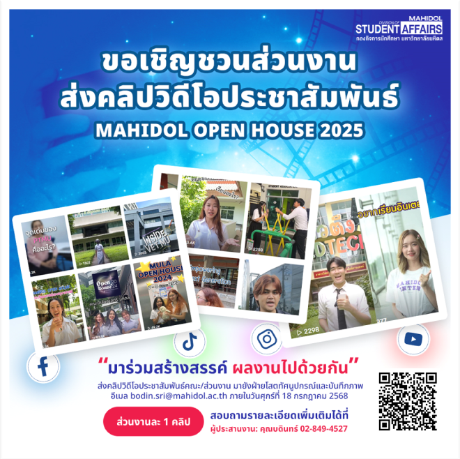 ขอเชิญชวนส่วนงานส่งคลิปประชาสัมพันธ์ MAHIDOL OPEN HOUSE 2025